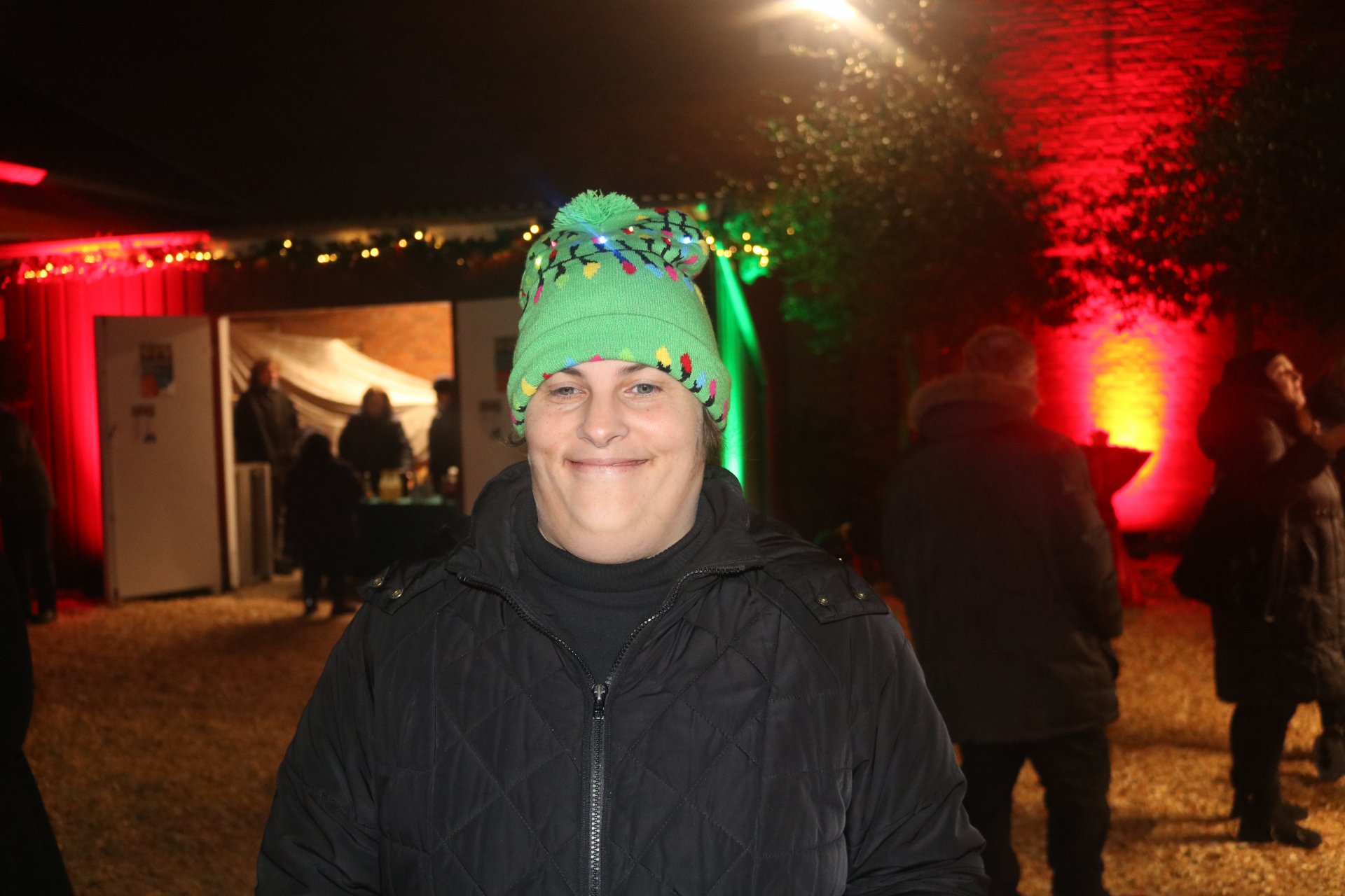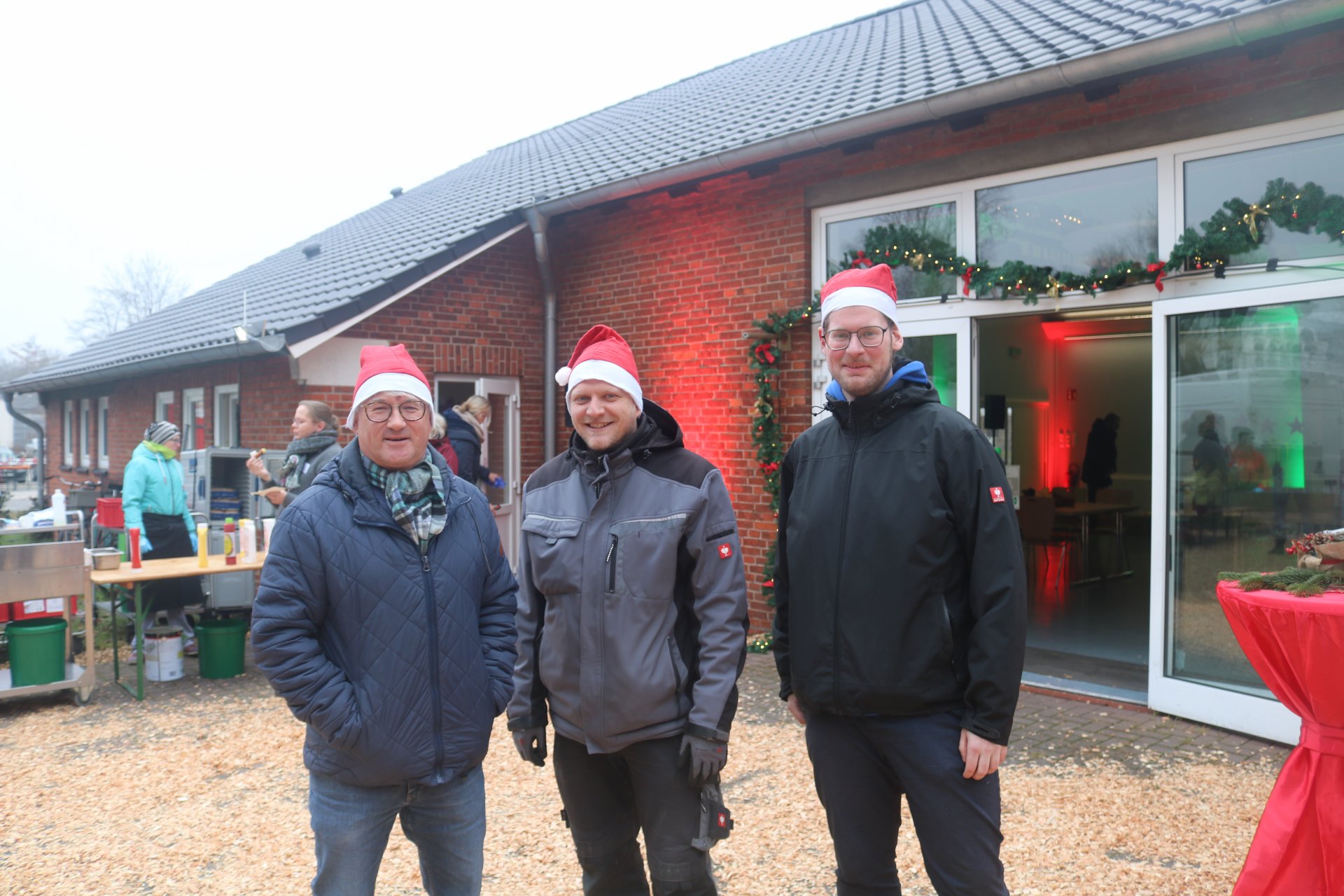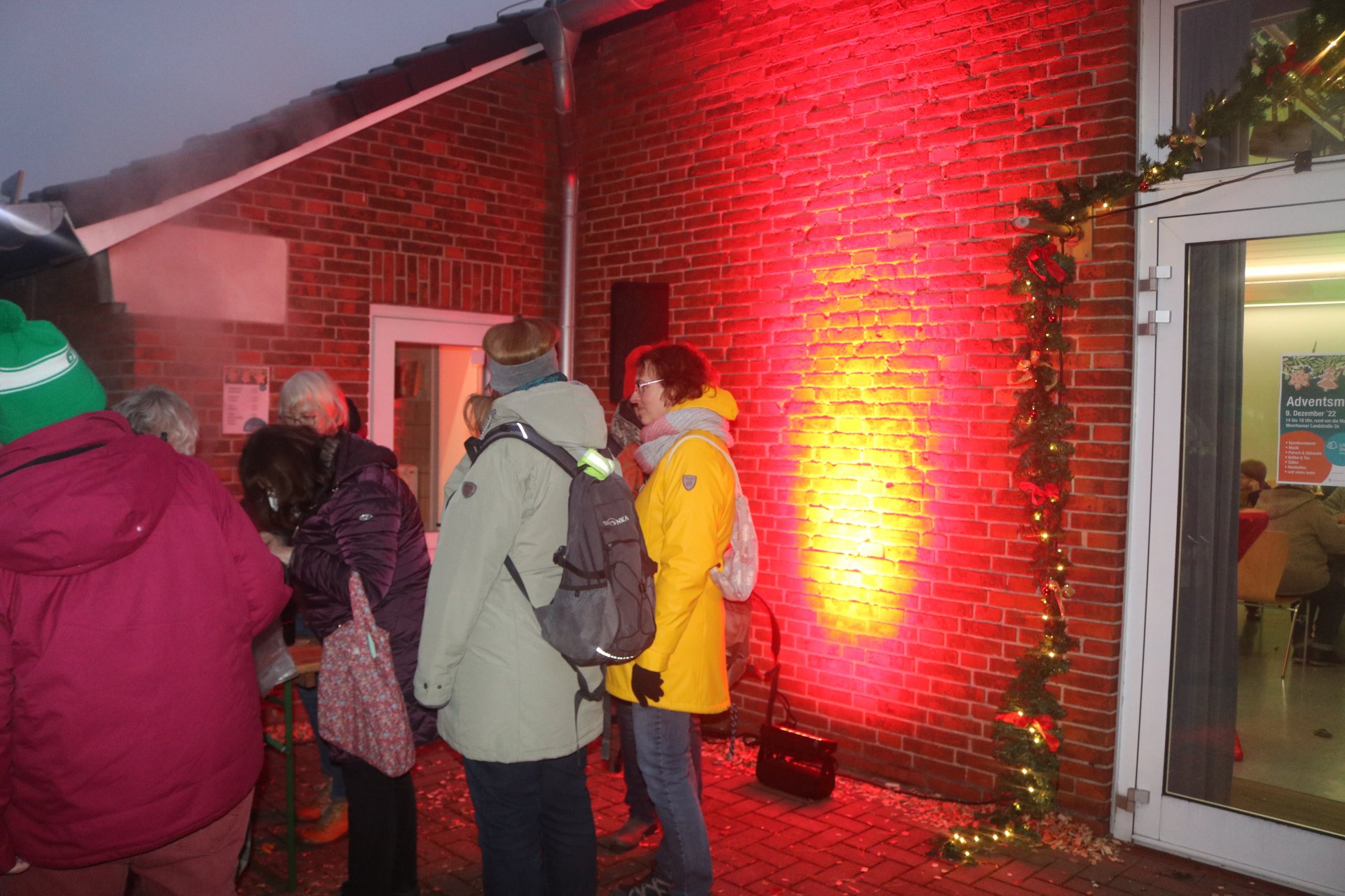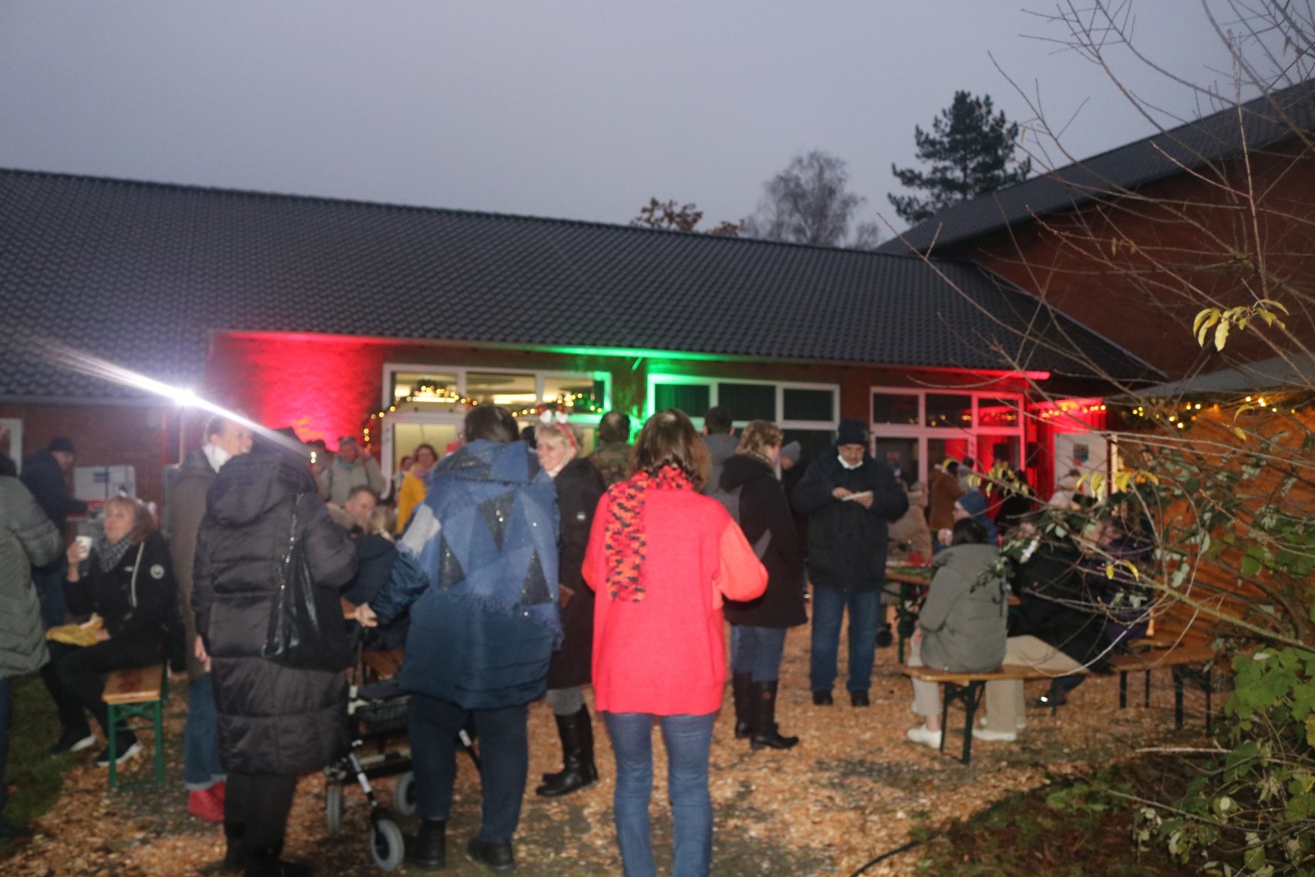 Rindenmulch sowie die Lichtinstallationen in Rot und Grün im Außen- und Innenbereich sorgten dazu für eine schöne Atmosphäre, ebenso wie die Musik - live gespielt - die die Besucherinnen und Besucher in weihnachtliche Stimmung versetzte.