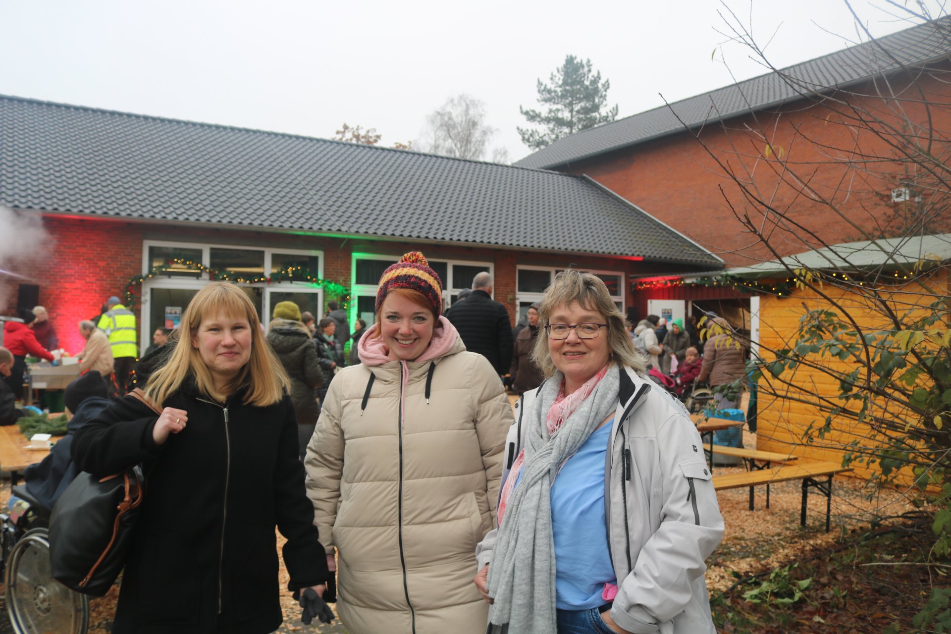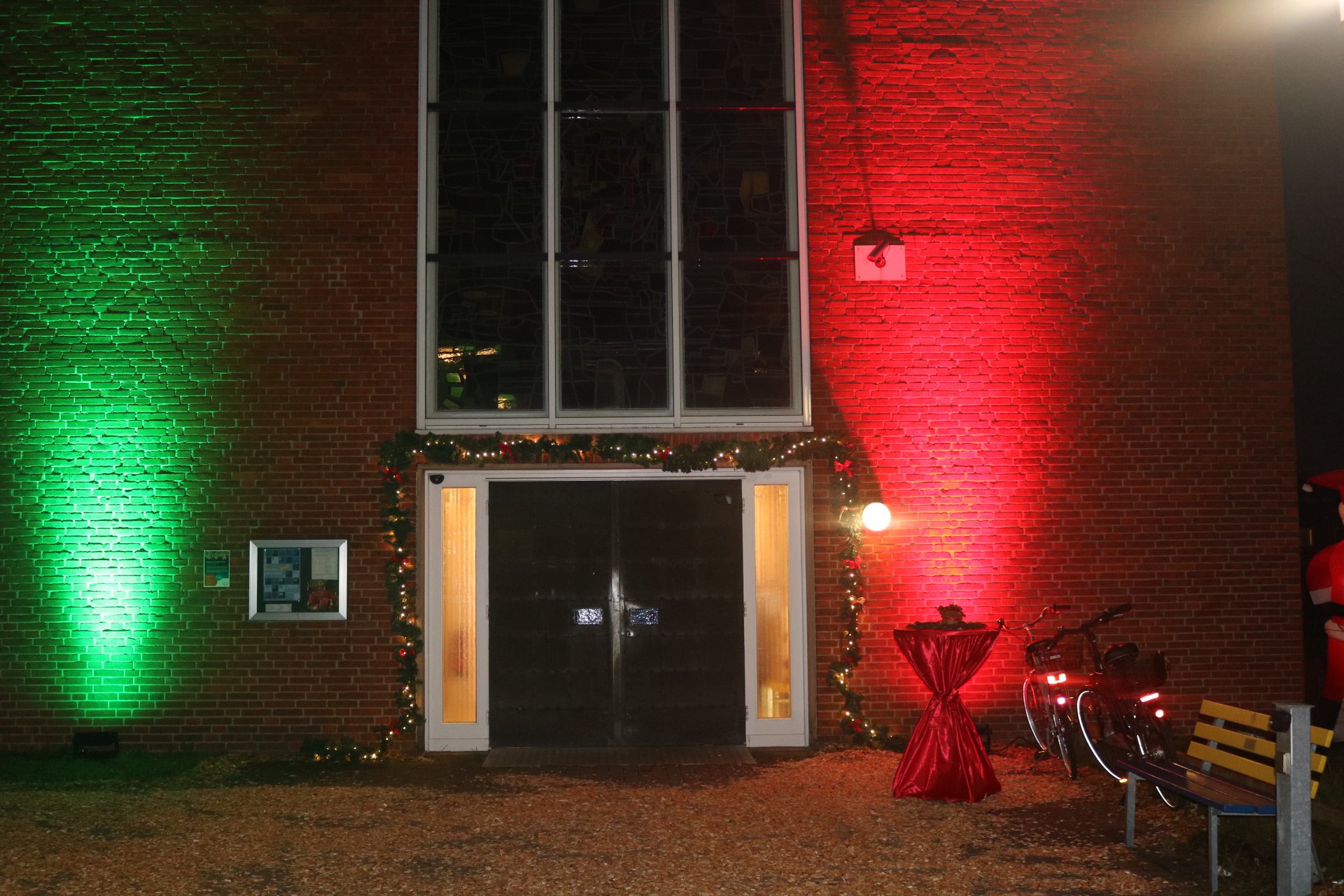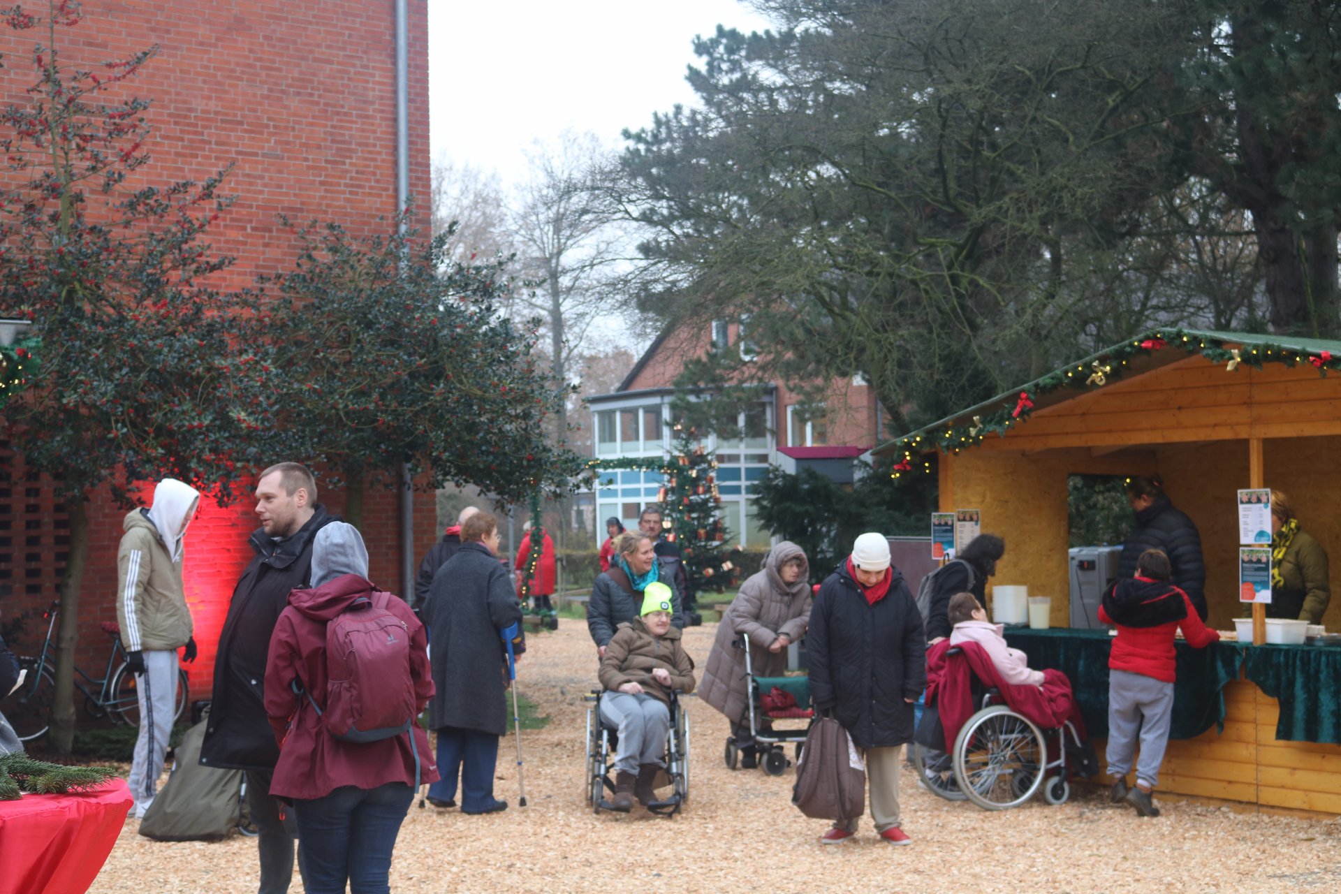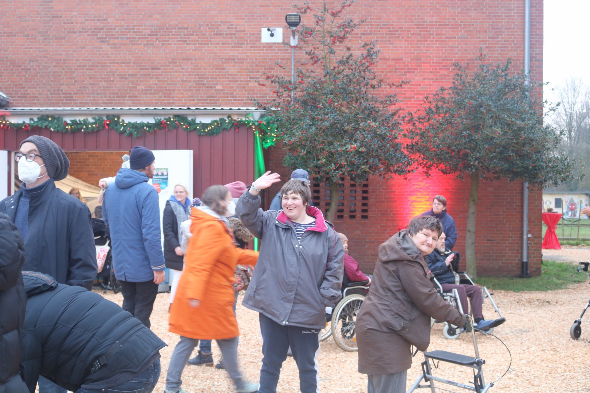 Rindenmulch sowie die Lichtinstallationen in Rot und Grün im Außen- und Innenbereich sorgten dazu für eine schöne Atmosphäre, ebenso wie die Musik - live gespielt - die die Besucherinnen und Besucher in weihnachtliche Stimmung versetzte.