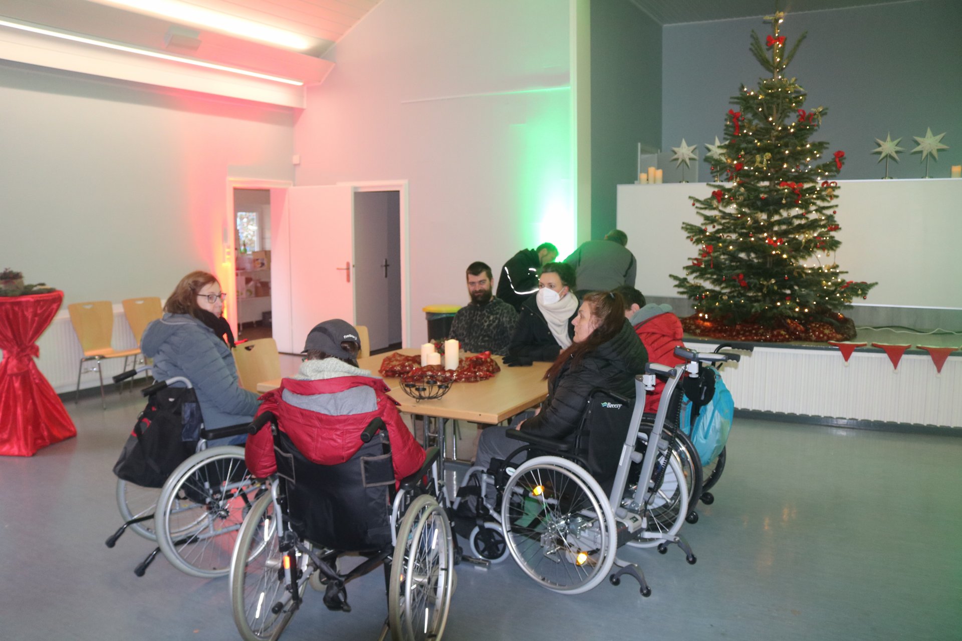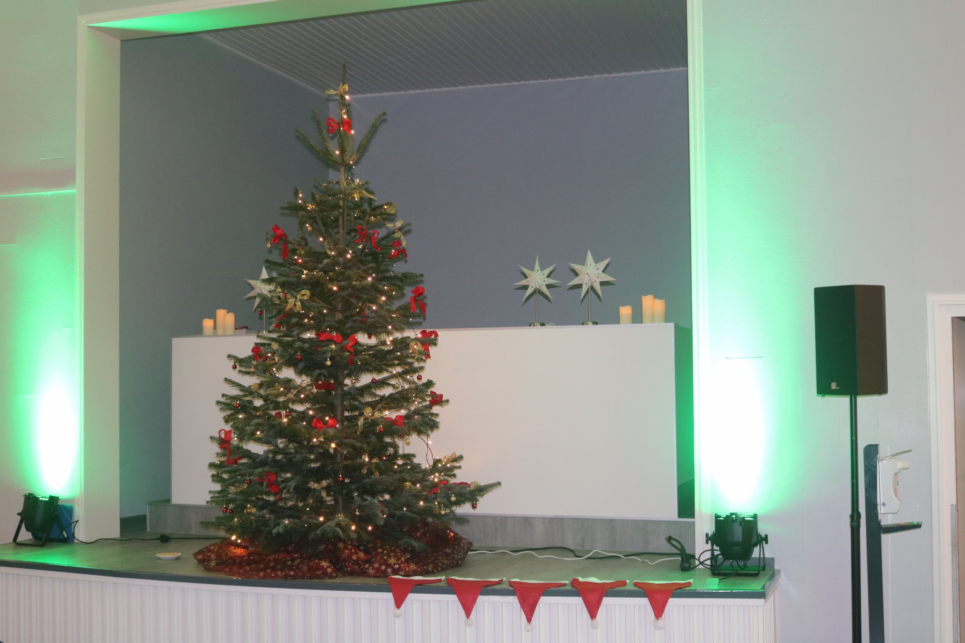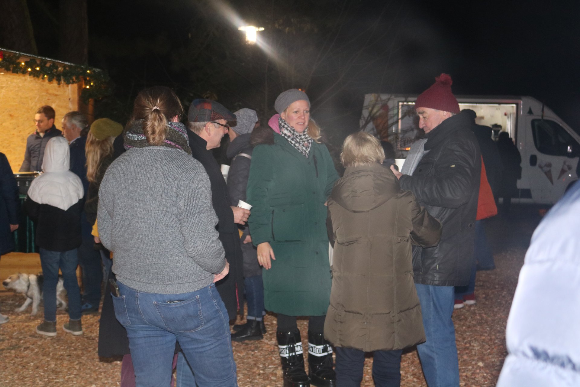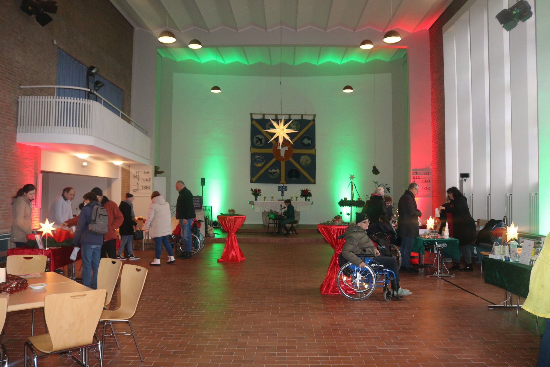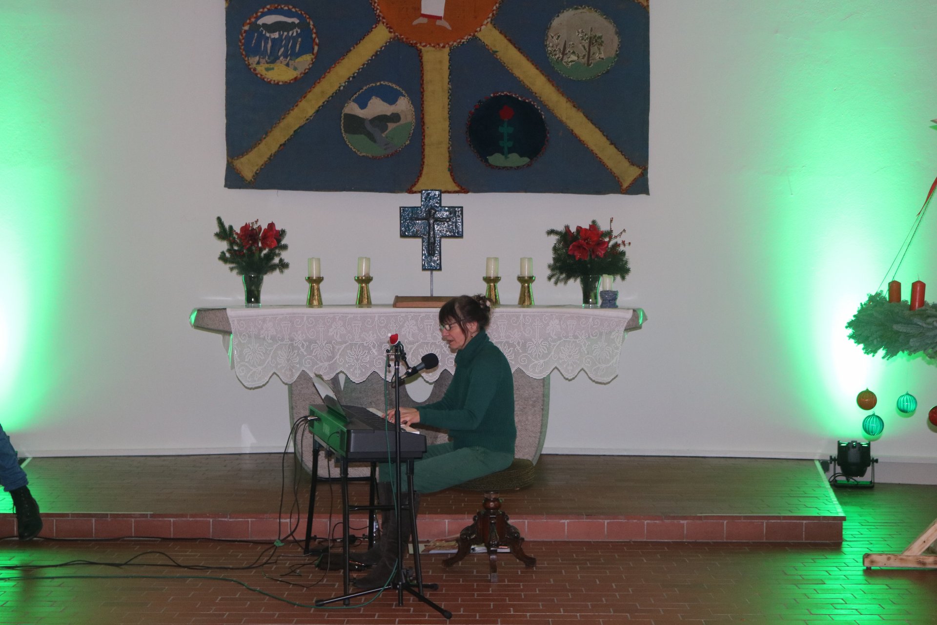 Rindenmulch sowie die Lichtinstallationen in Rot und Grün im Außen- und Innenbereich sorgten dazu für eine schöne Atmosphäre, ebenso wie die Musik - live gespielt - die die Besucherinnen und Besucher in weihnachtliche Stimmung versetzte.
