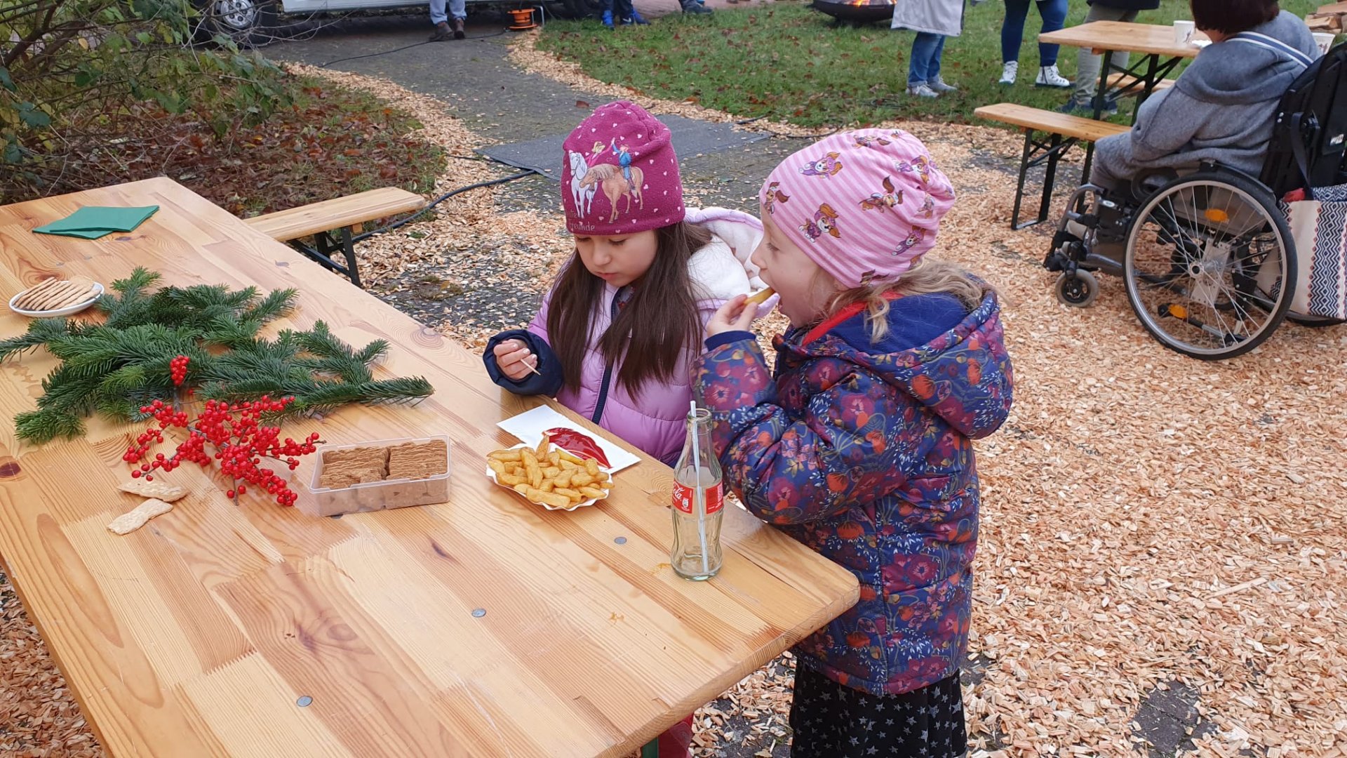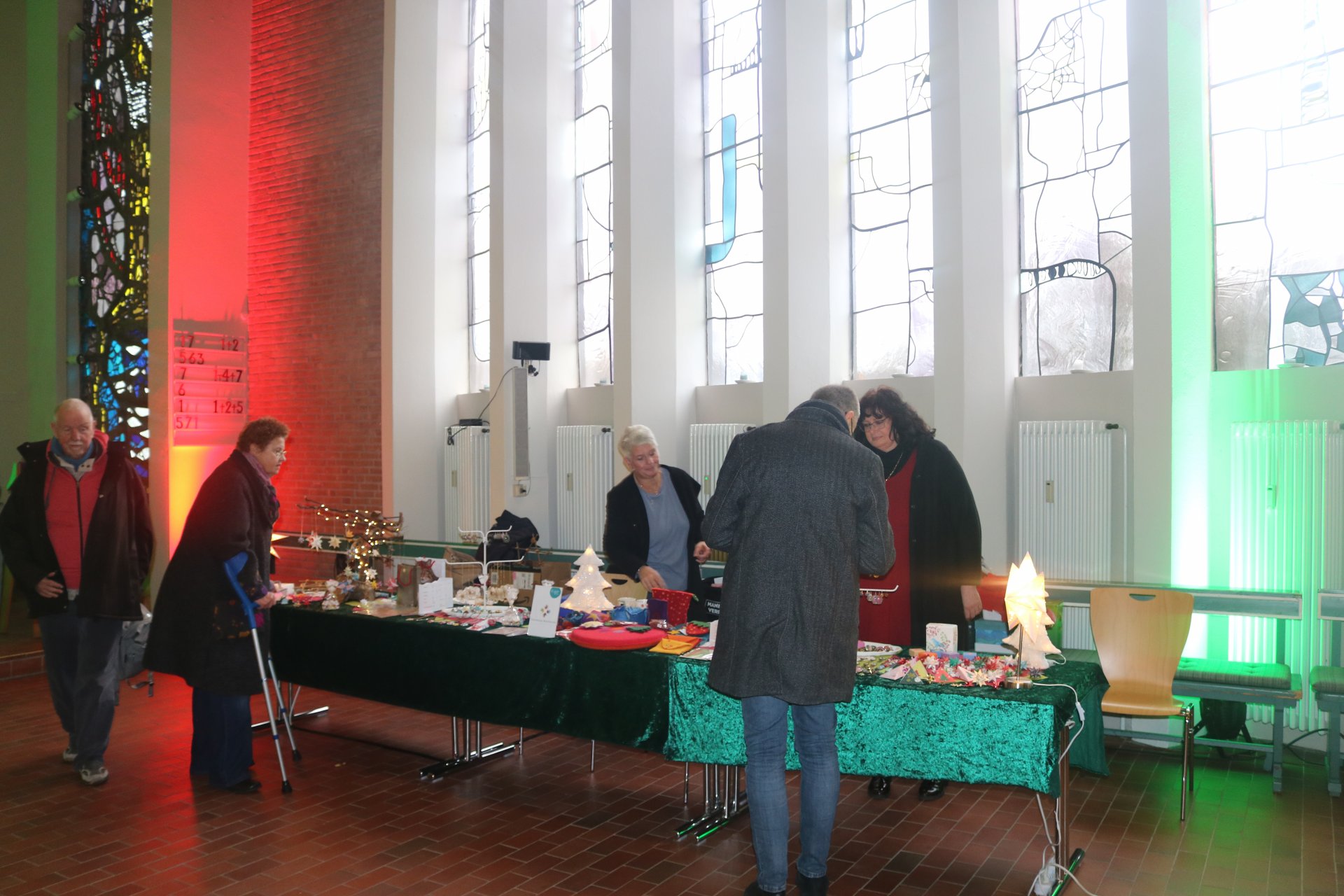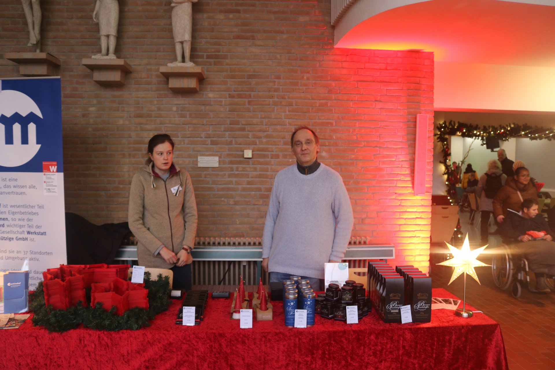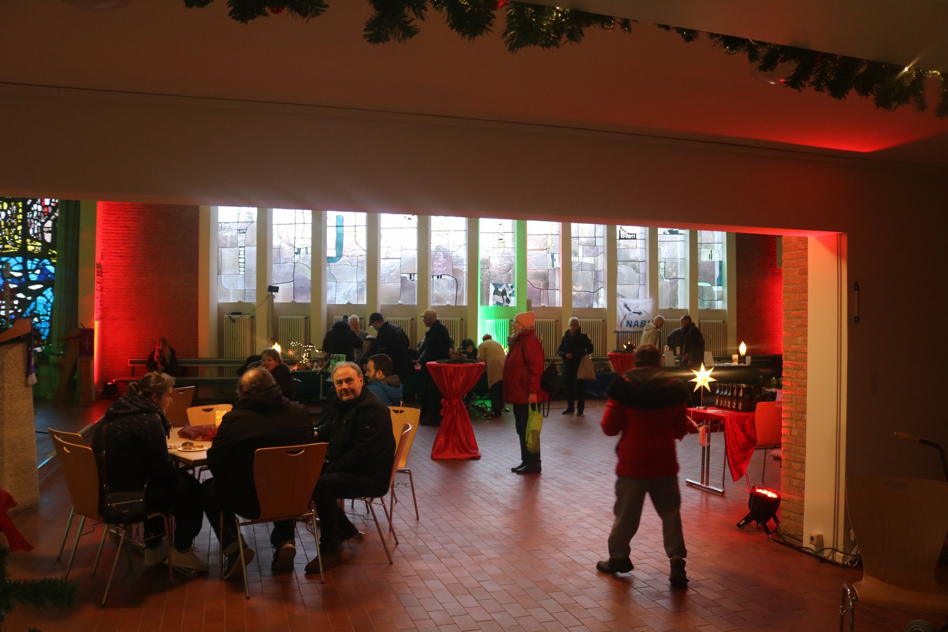 Rindenmulch sowie die Lichtinstallationen in Rot und Grün im Außen- und Innenbereich sorgten dazu für eine schöne Atmosphäre, ebenso wie die Musik - live gespielt - die die Besucherinnen und Besucher in weihnachtliche Stimmung versetzte.