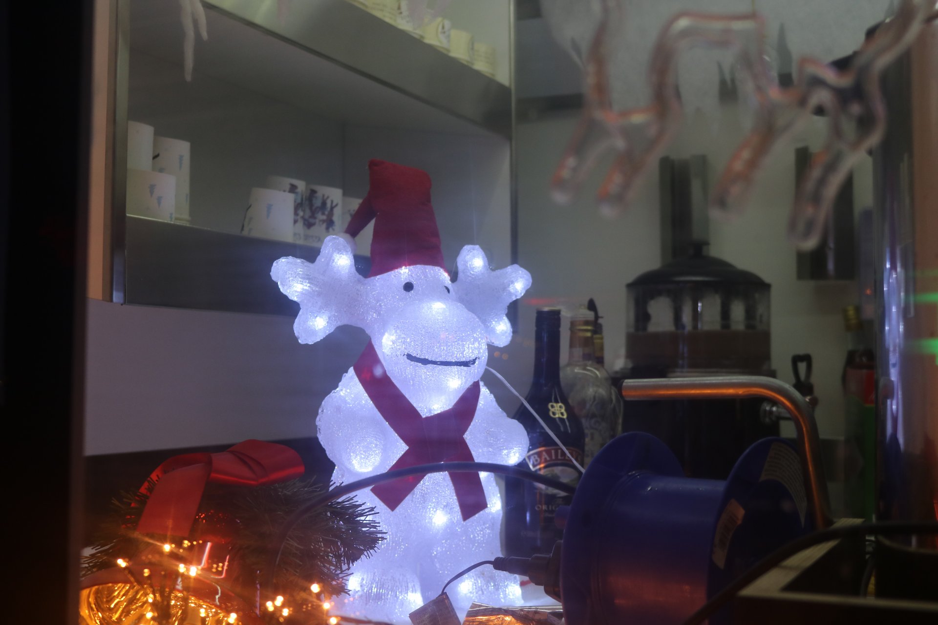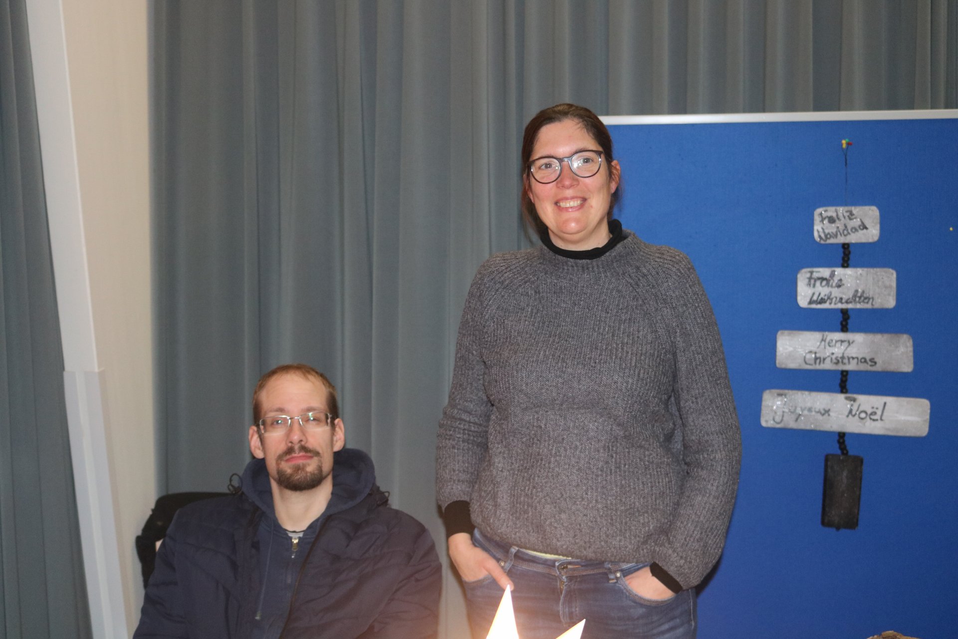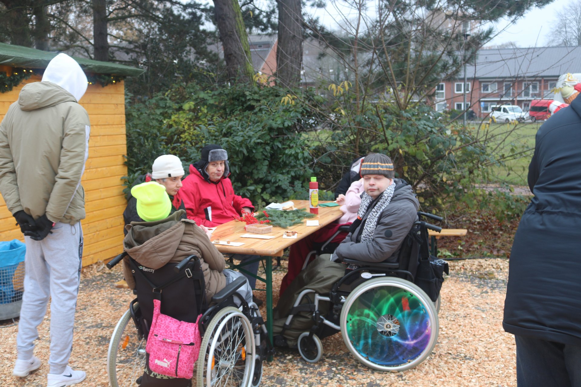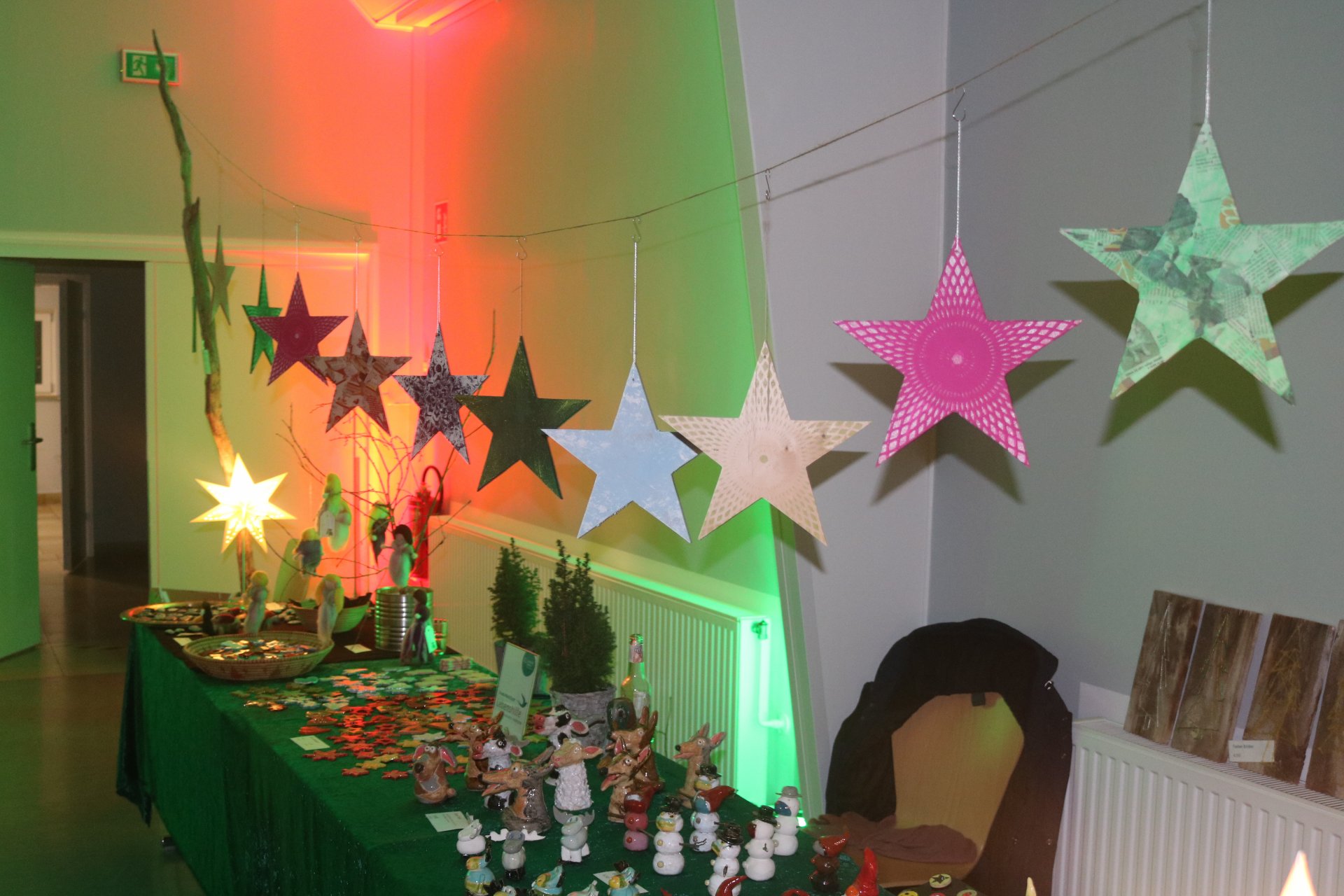 Rindenmulch sowie die Lichtinstallationen in Rot und Grün im Außen- und Innenbereich sorgten dazu für eine schöne Atmosphäre, ebenso wie die Musik - live gespielt - die die Besucherinnen und Besucher in weihnachtliche Stimmung versetzte.