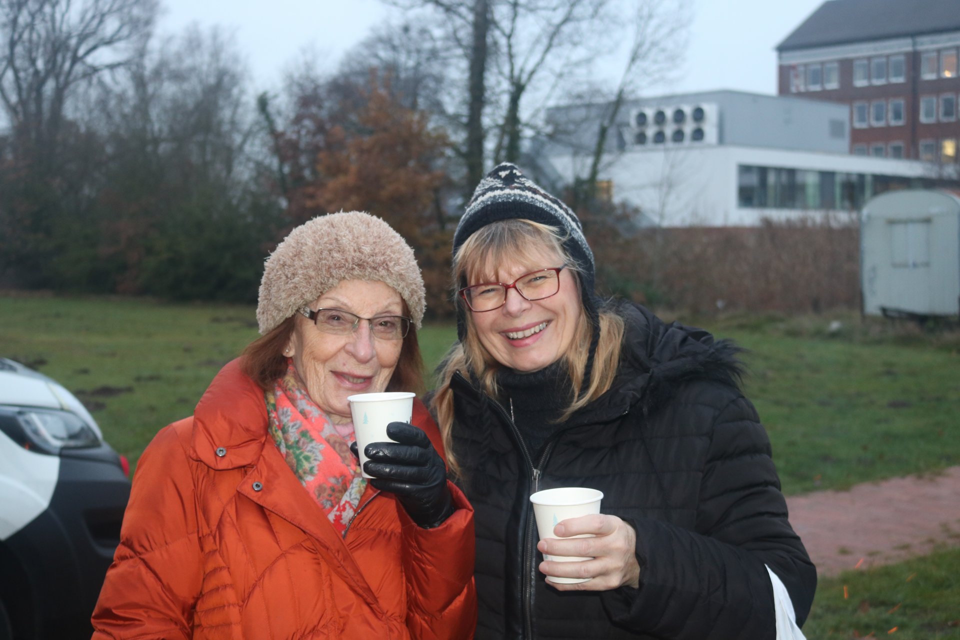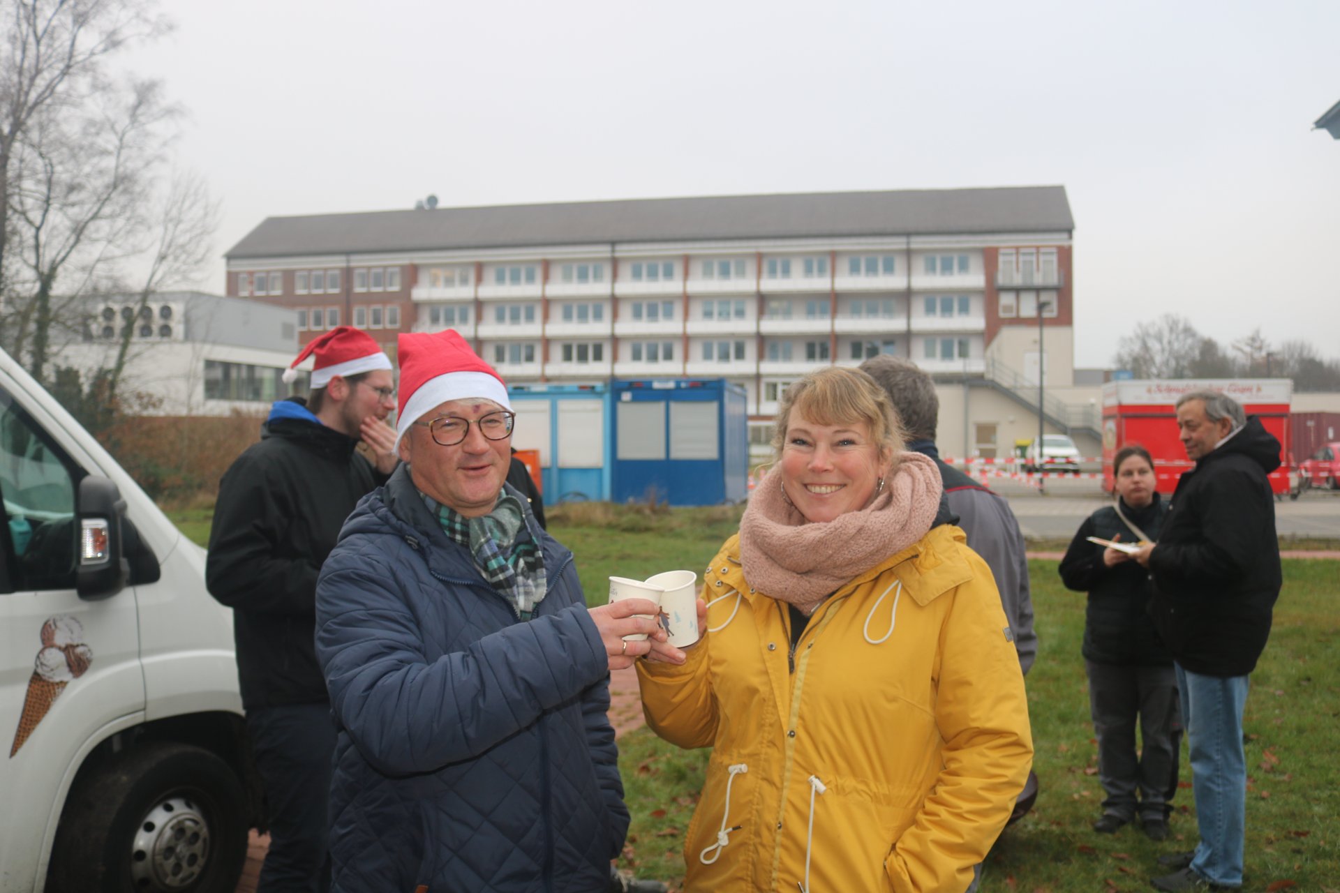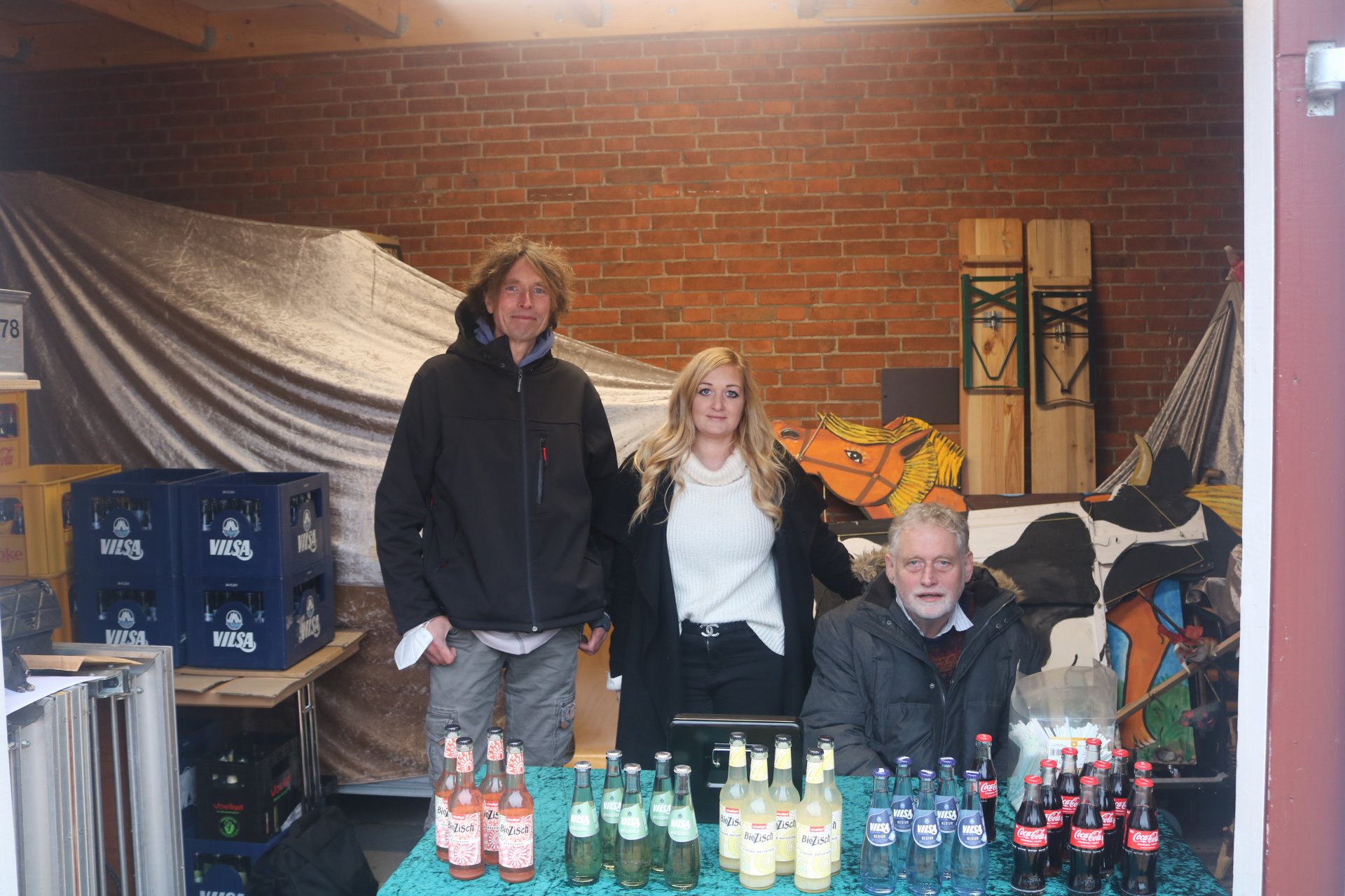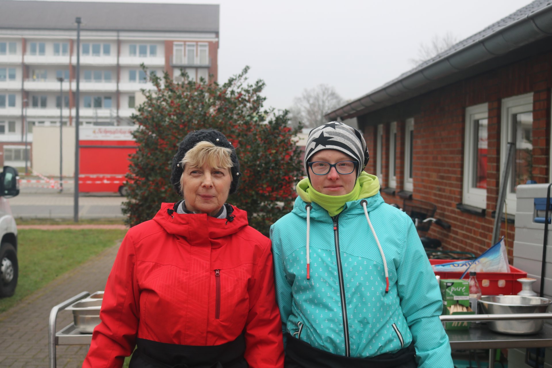 Gutgelaunte und motivierte Pommes- und Würstchenbräterinnen, Crêpes-Jongleure, Kuchen- und Bratapfelexpertinnen sowie das Getränke-Verkaufsteam und das tapfere "Kassen-Fräulein" strahlten trotz kaltem Wetter unverwüstlich fröhlich in die Kamera.
