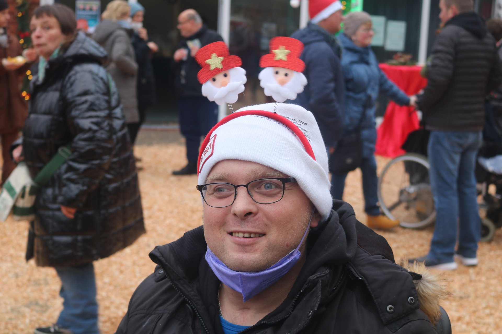 Ein dicker aufblasbarer Weihnachtsmann neben der Kirche wies den Gästen den Weg zum Adventsmarkt.