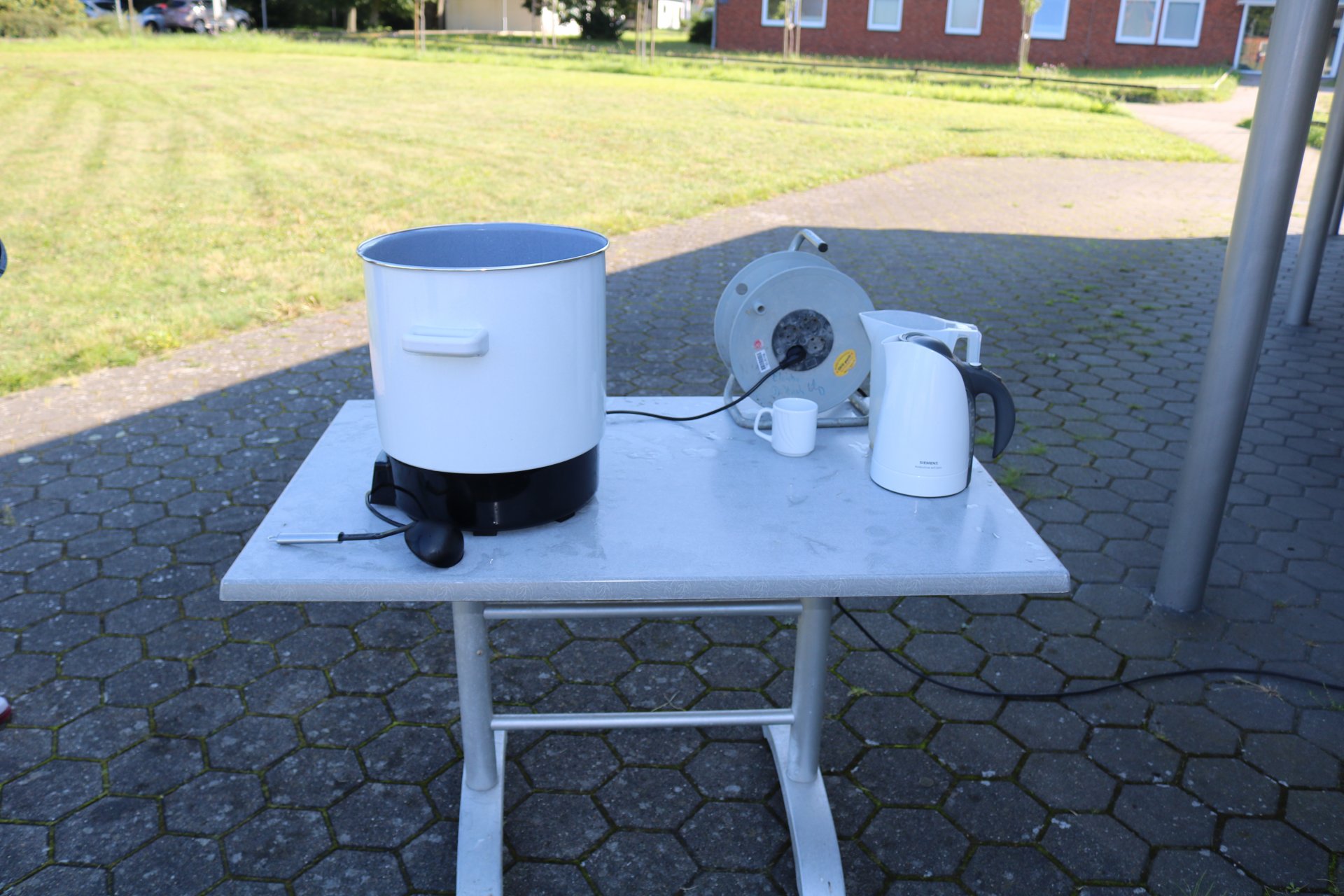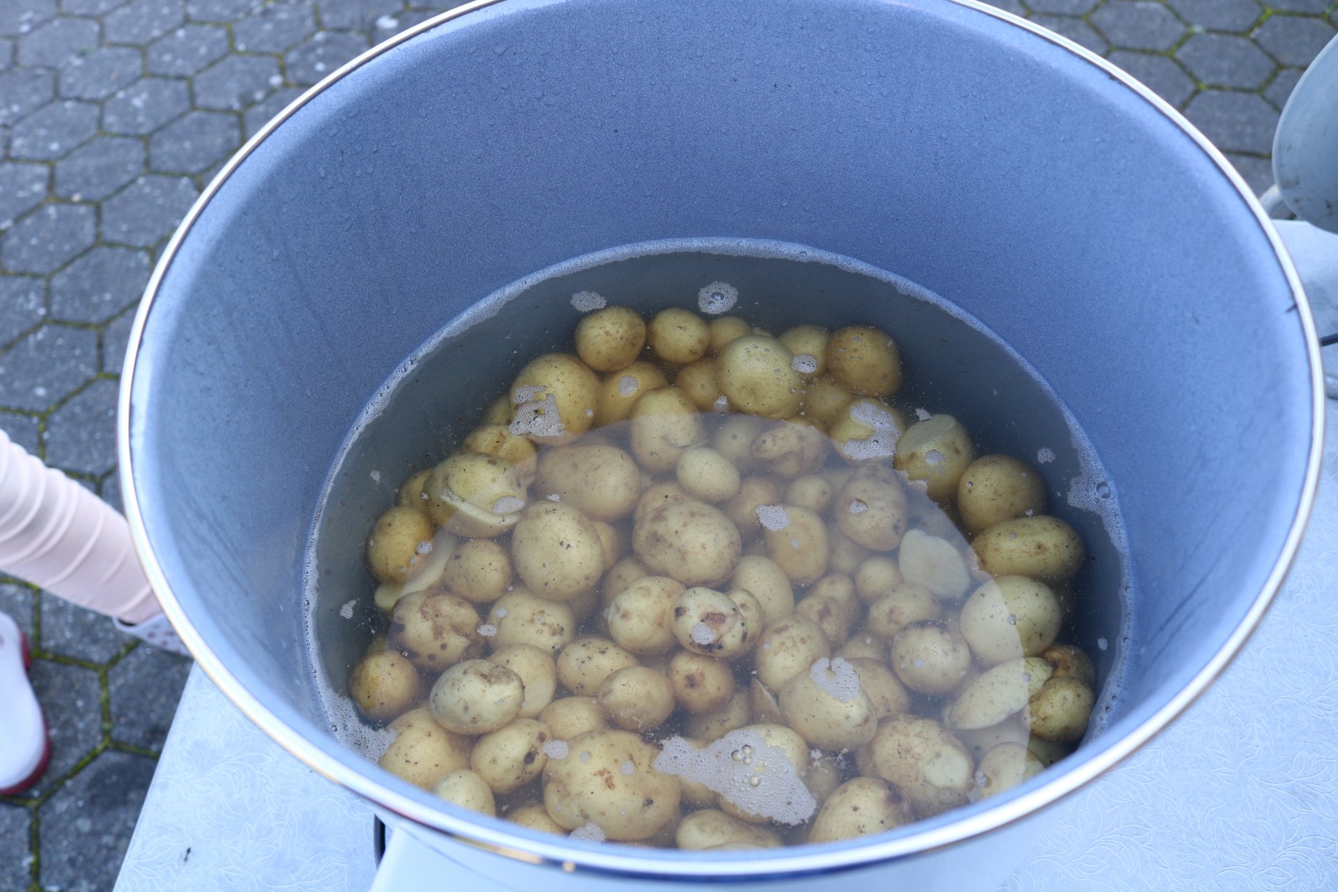 Nach der Ernte wurde der mitgebrachte und bereits vorgeheizte Kochtopf aktiviert, um die Erdäpfel möglichst schnell zu kochen.