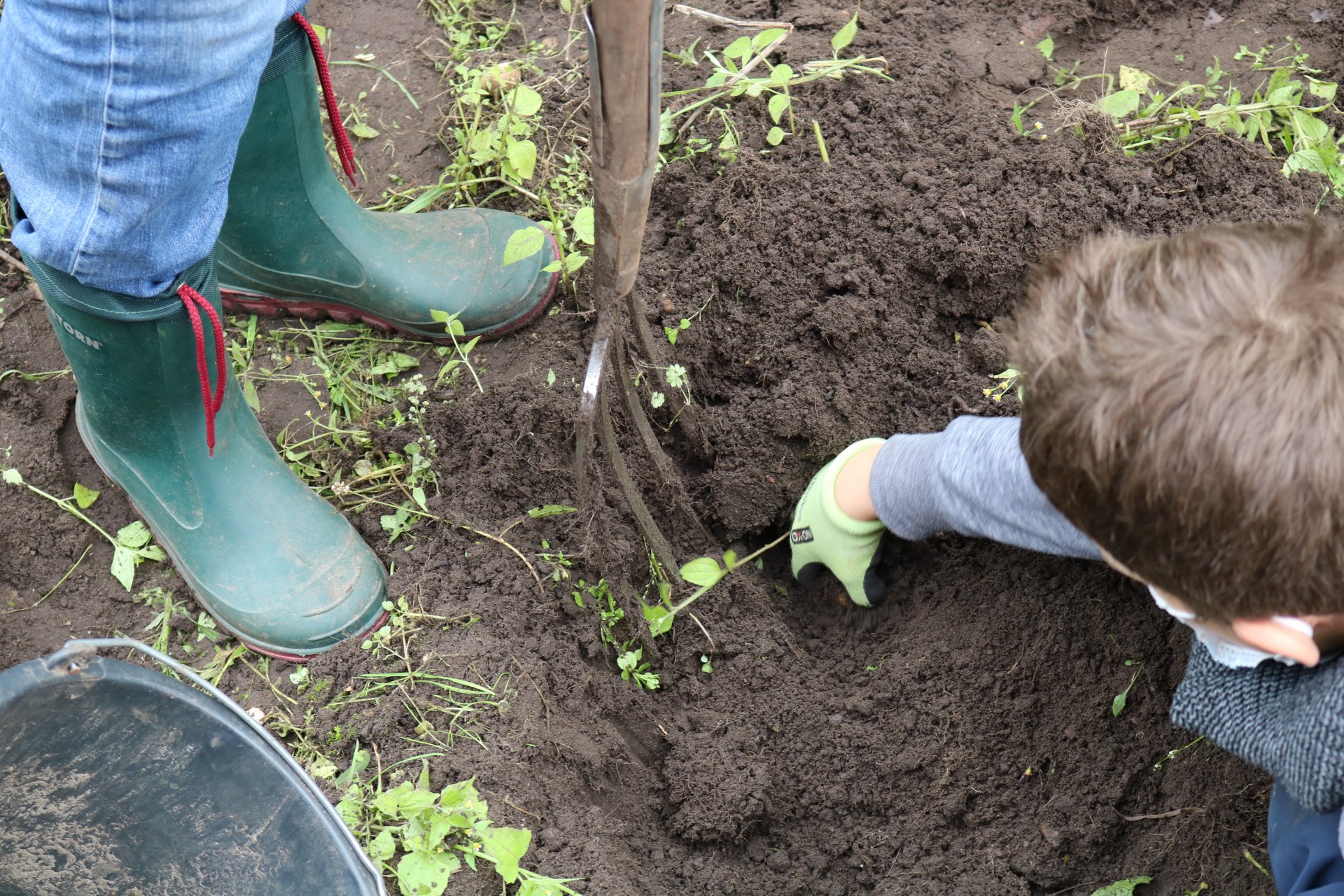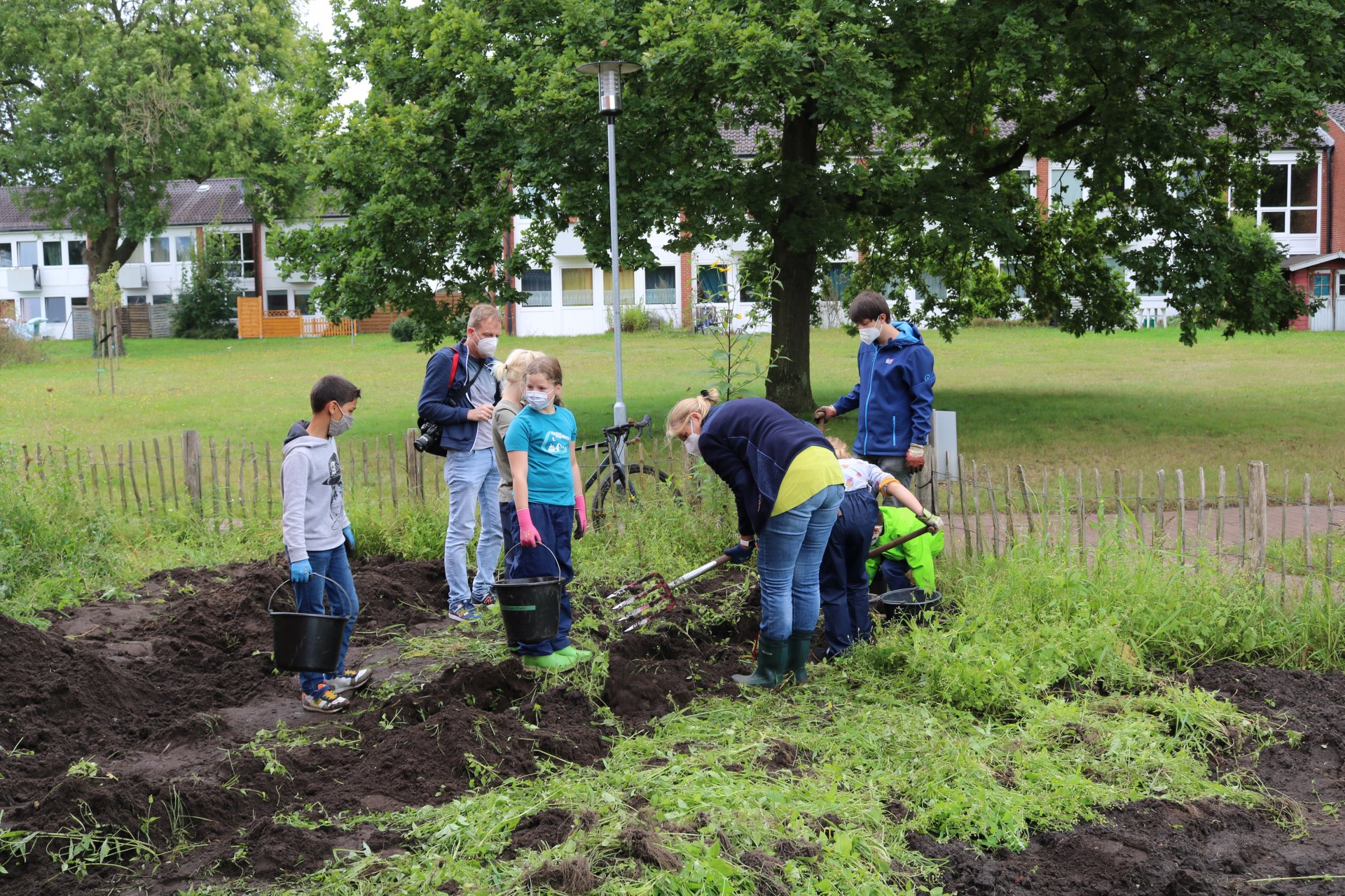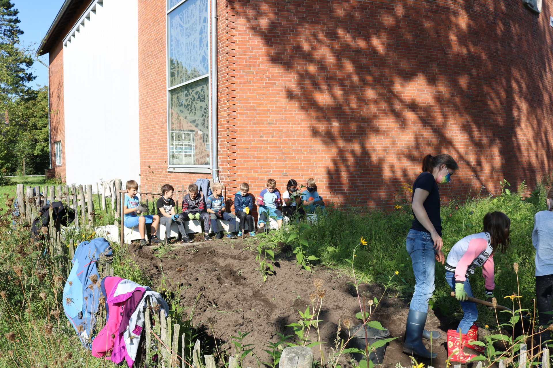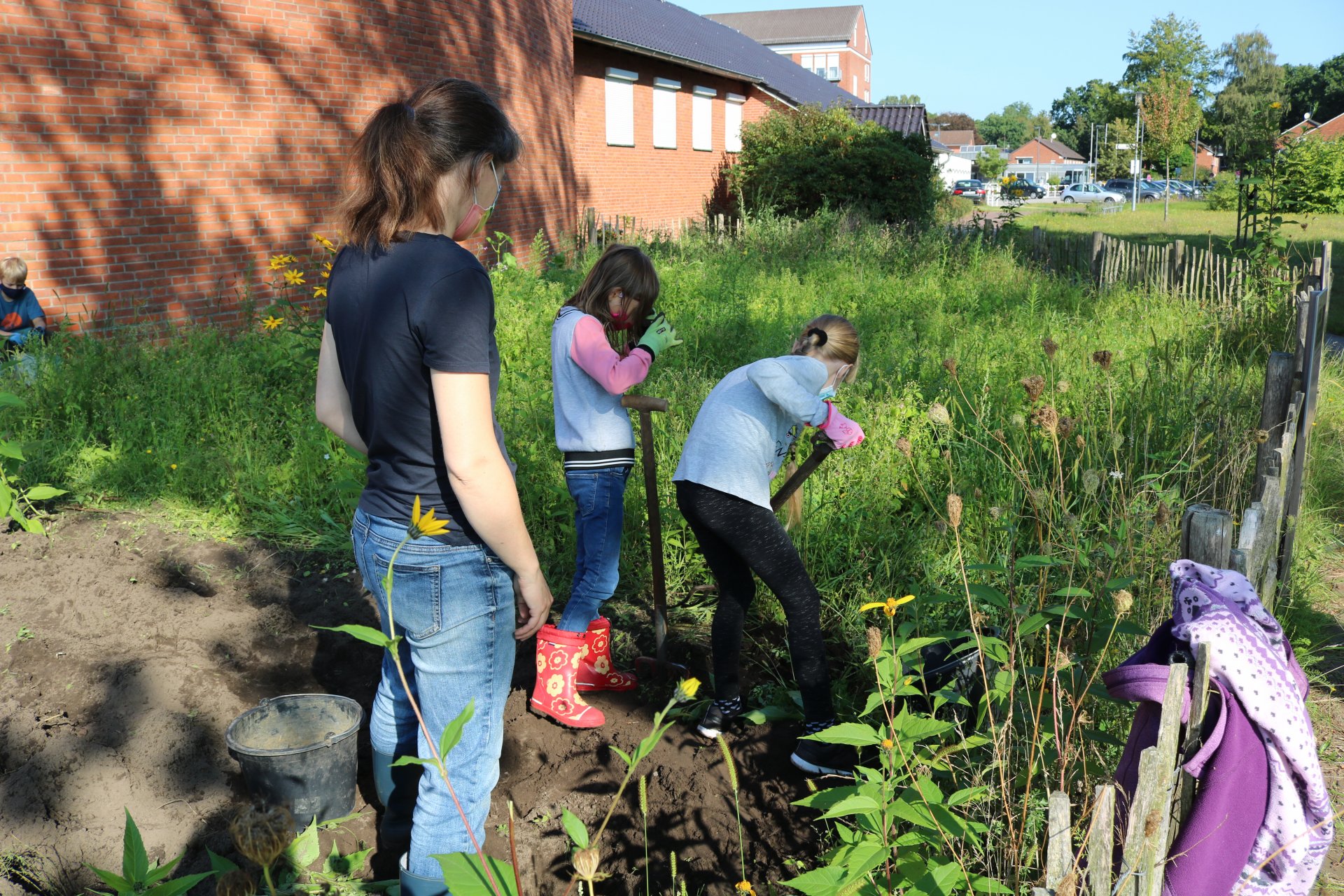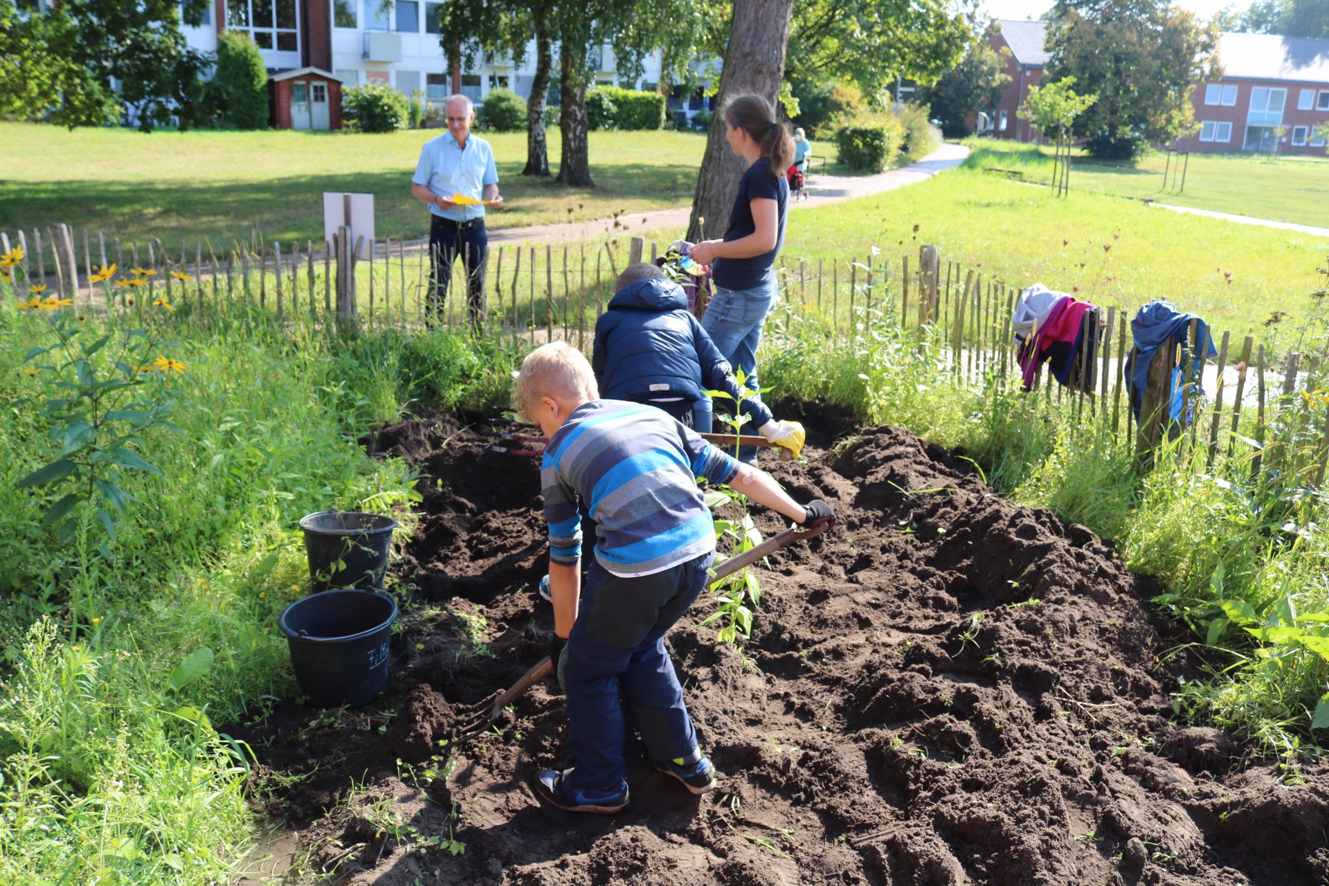 Antje Kappel, die verantwortliche Projektleiterin der Biologischen Station Osterholz (BIOS), beantwortete geduldig alle Fragen der kleinen Gärtnerinnen und Gärtner. Und gab klare Anweisungen, z.B. zur Verwendung einer Grabegabel.