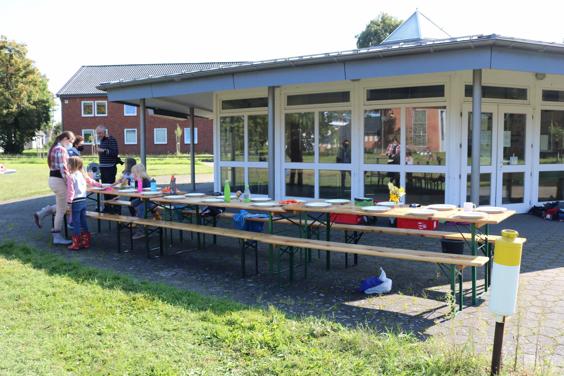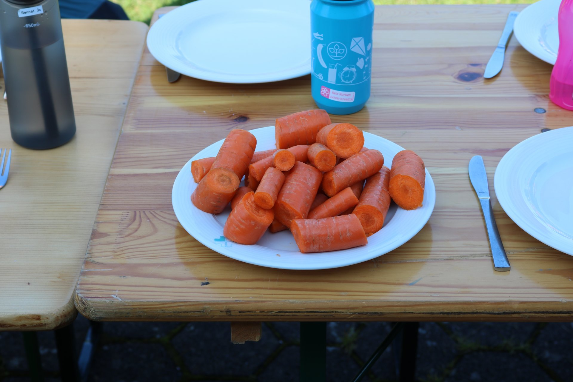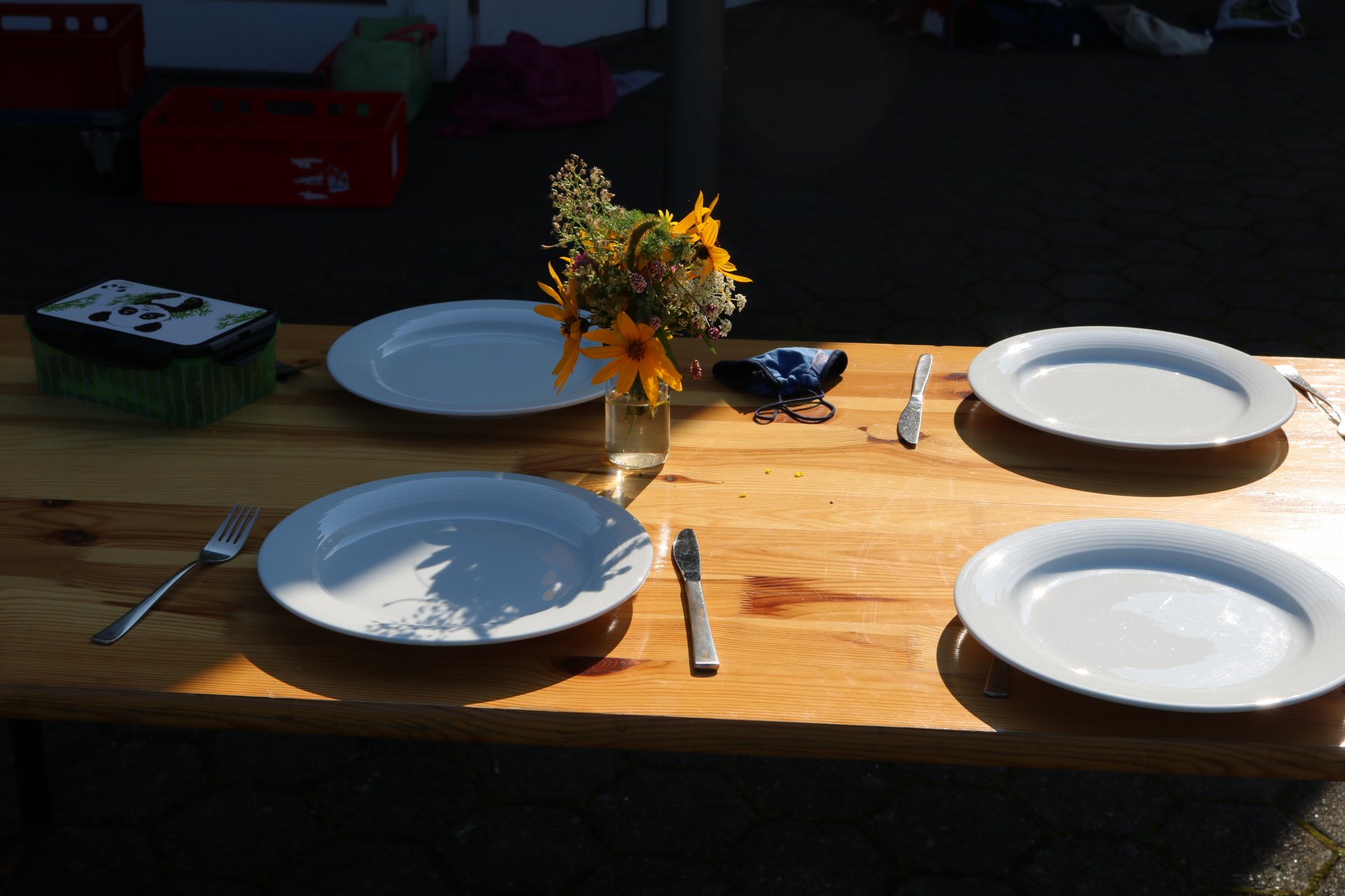 Das Ergebnis konnte sich sehen lassen: Pellkartoffeln, Quarkdipp und Möhren wurden zu Mittag - an einem mit Blumen gedeckten Tisch - verspeist.