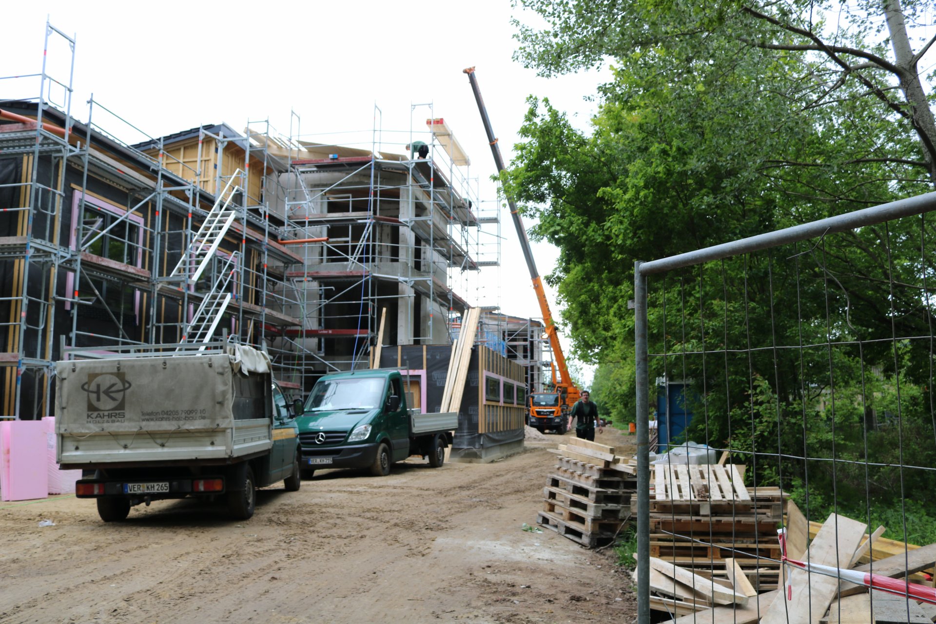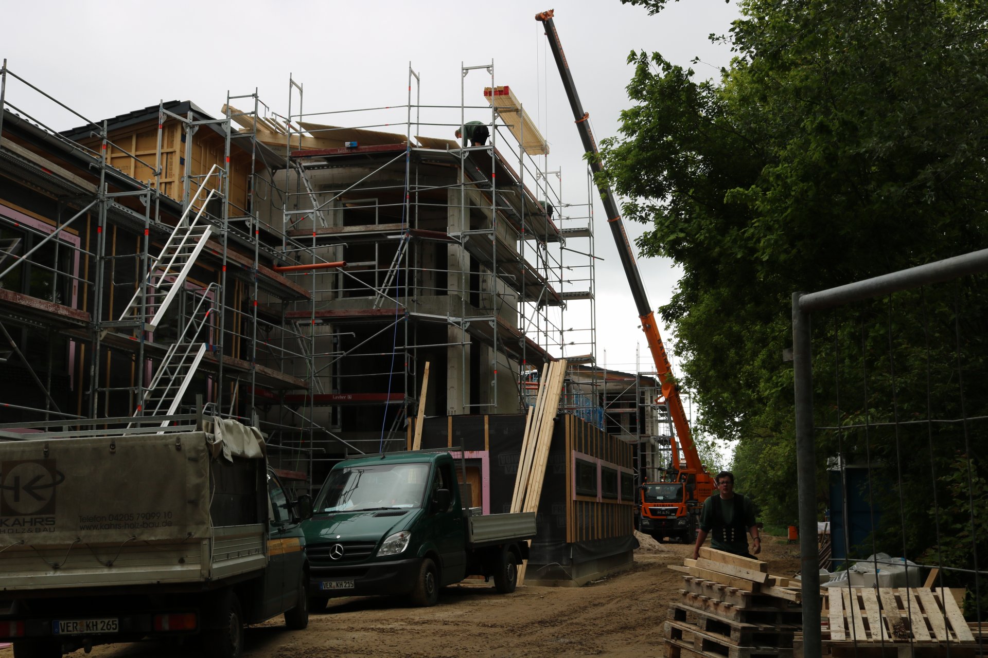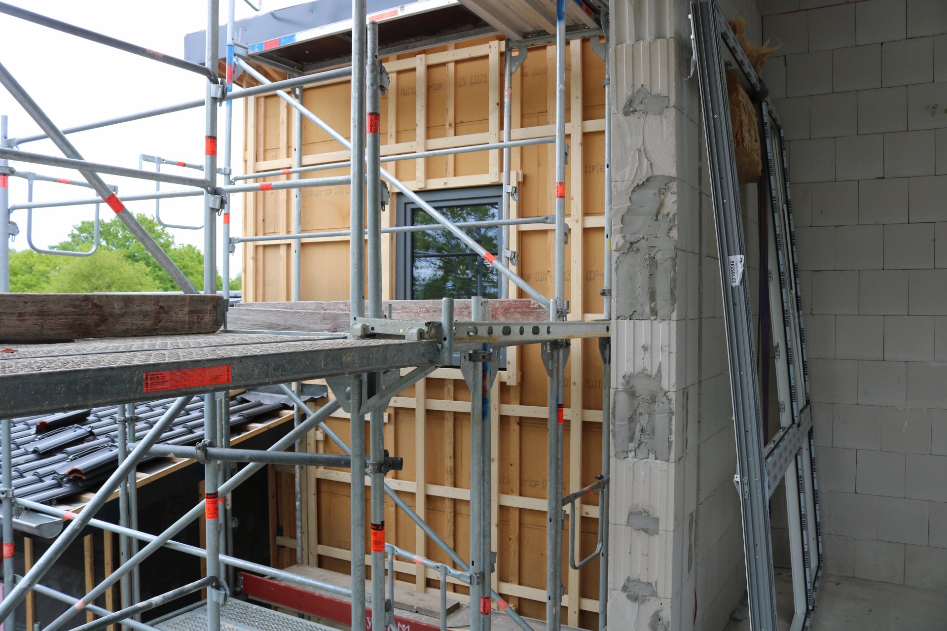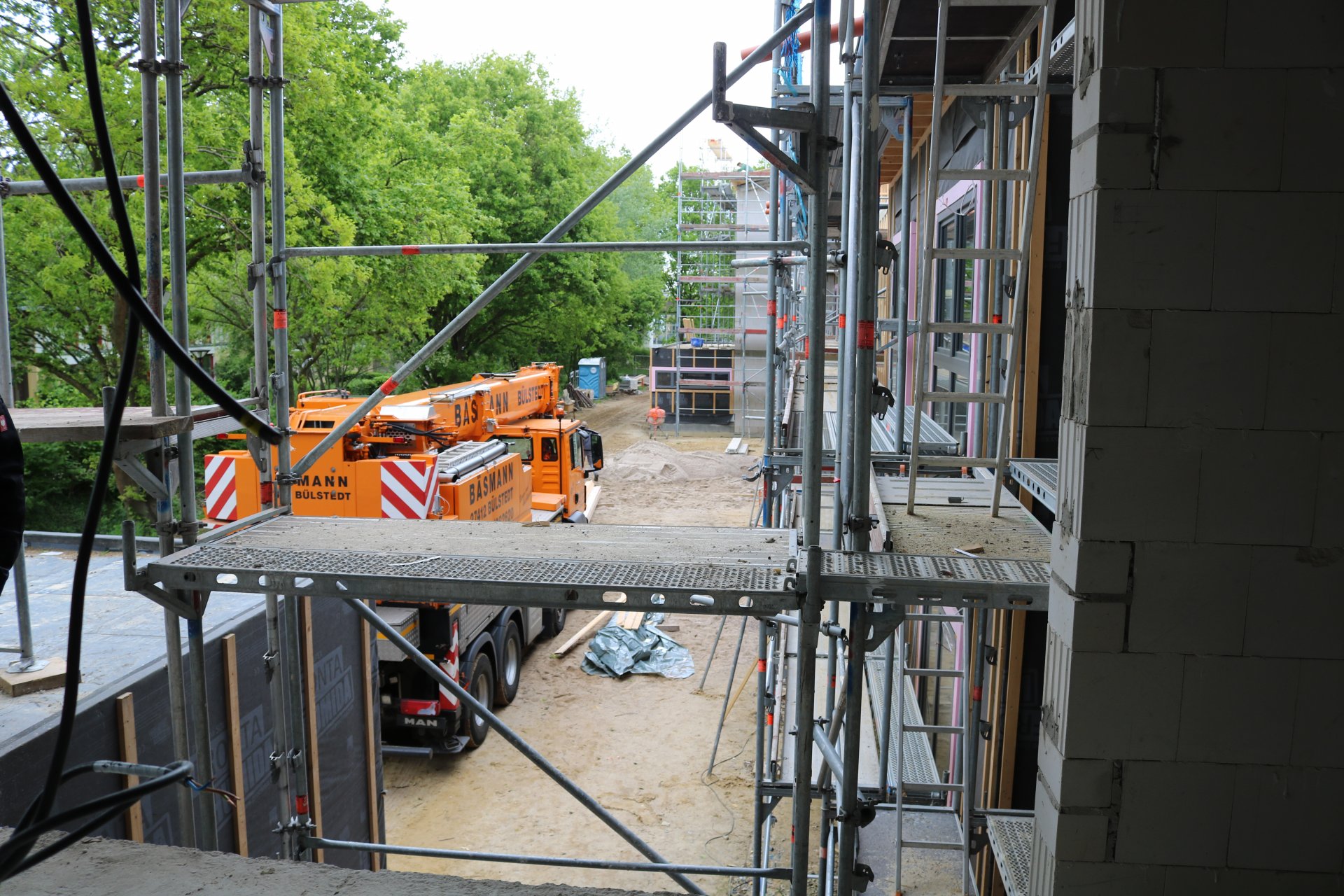 Die aktuelle Materialknappheit für Rohstoffe wie z.B. Stahl, Holz und Dämmstoffe geht auch an unserem Bauvorhaben nicht spurlos vorbei. Da muss mit Materialien jongliert und klug verhandelt werden, um den Baubetrieb am Laufen zu halten. Nervenaufreibend und herausfordernd nennt Diethelm Wellbrock die derzeitige Situation.
