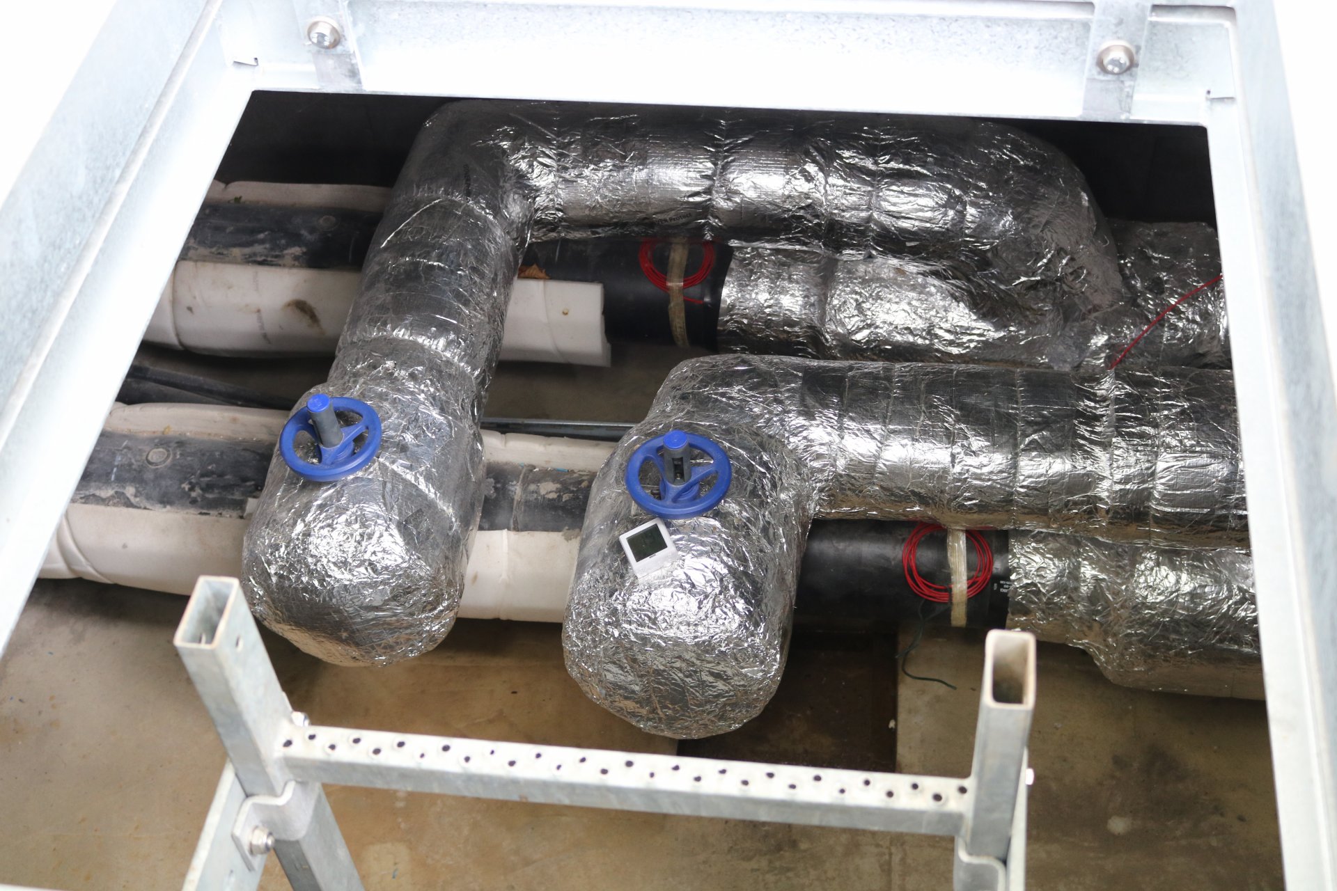 So sind die Dächer bereits gedeckt, die Heizspiralen für die Fußbodenheizung verlegt und der Estrich ist ebenfalls eingebracht.