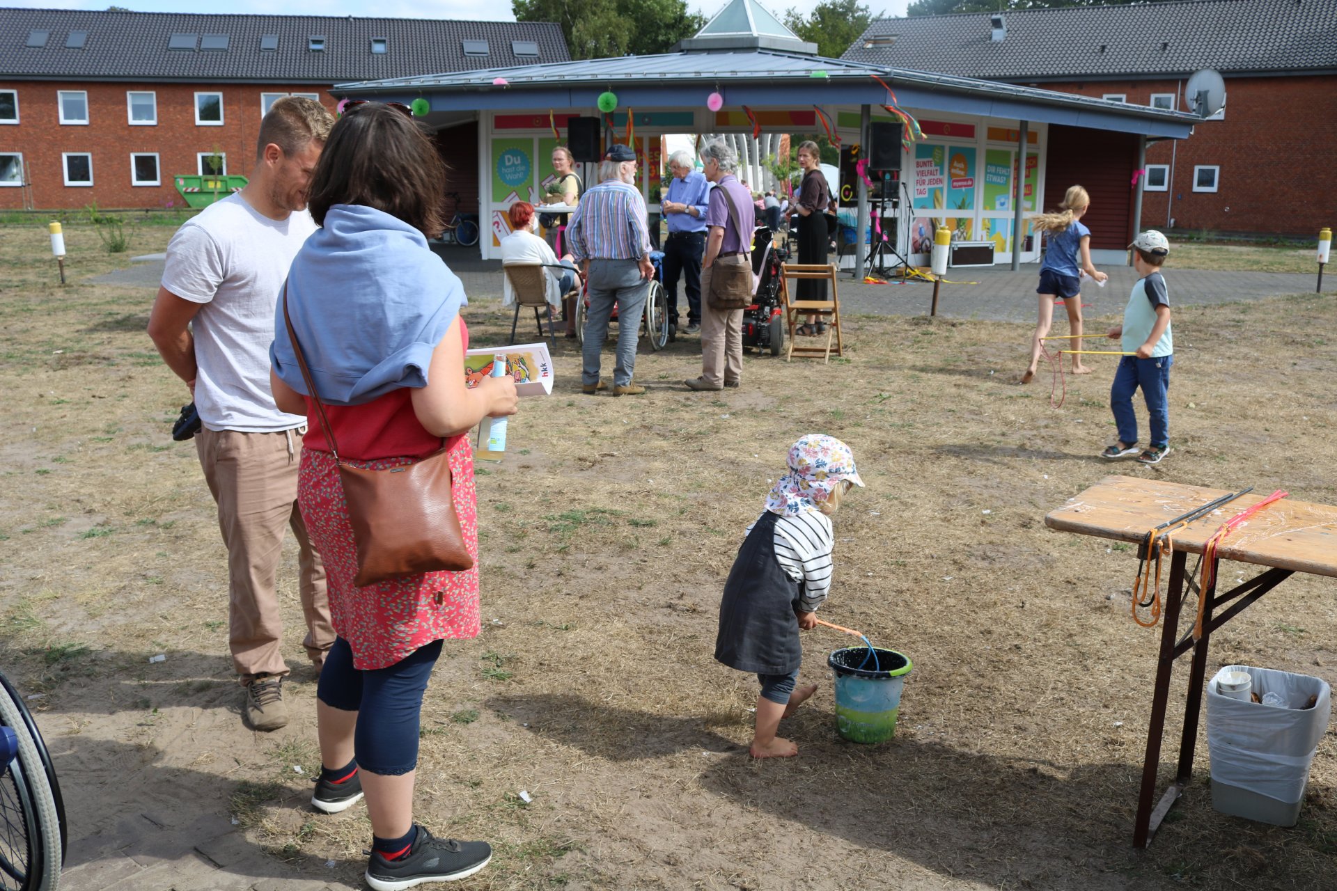 Ein buntes Treiben entwickelte sich im Laufe des Tages. Die Spielstätten (Enten angeln, Dosenwerfen, Glücksrad, Luftkissen, Seifenblasen) wurden stark besucht und machten allen Spaß.