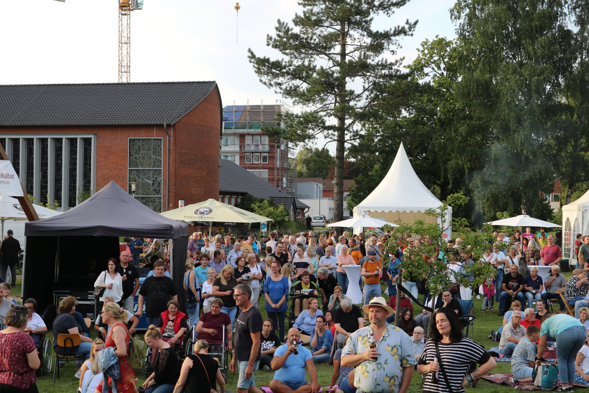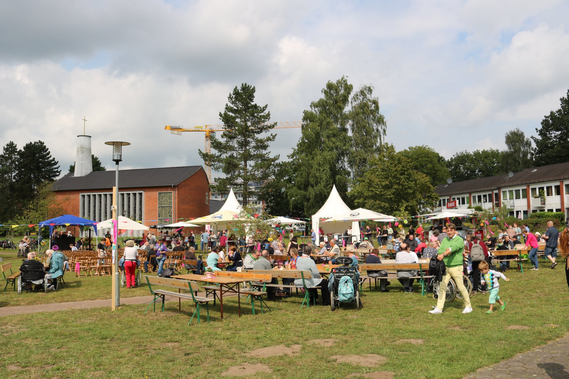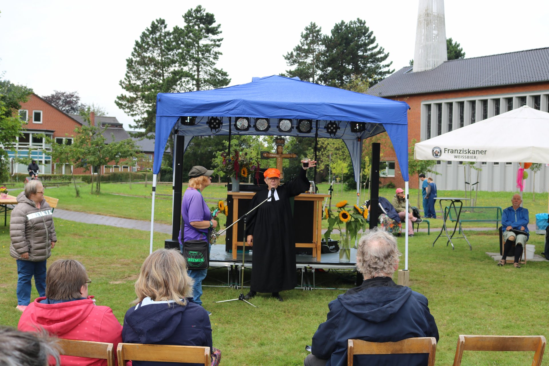 Viele Gäste fanden sich am Samstag bereits zur Mittagszeit zum Gottesdienst auf der Streuobstwiese ein und ließen sich auch durch einen kleinen Regenguss nicht erschüttern oder in die Flucht jagen. Dann riss der Himmel auf und die Sonne strahlte zum Start des Sommerfestes mit den Gästen um die Wette.