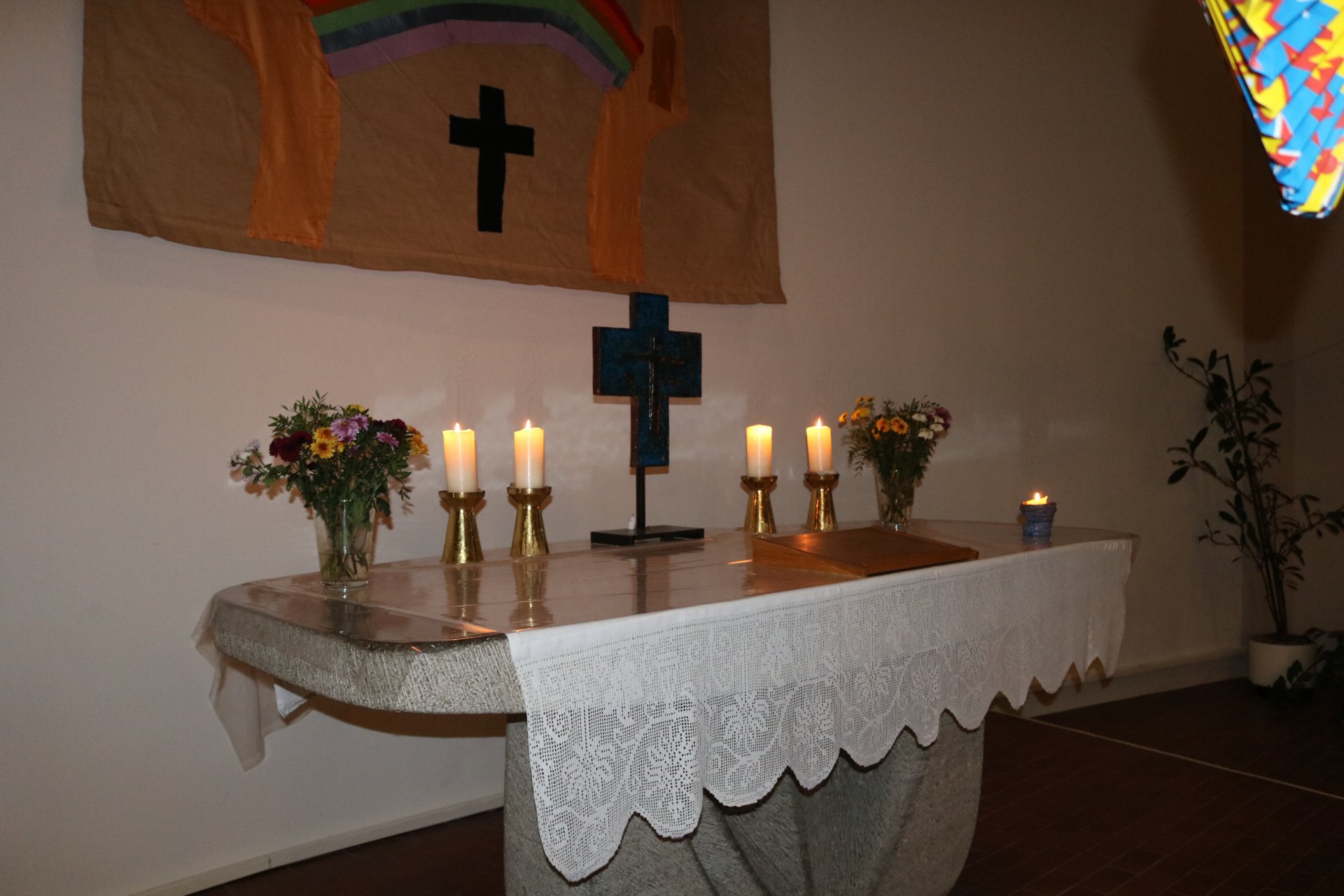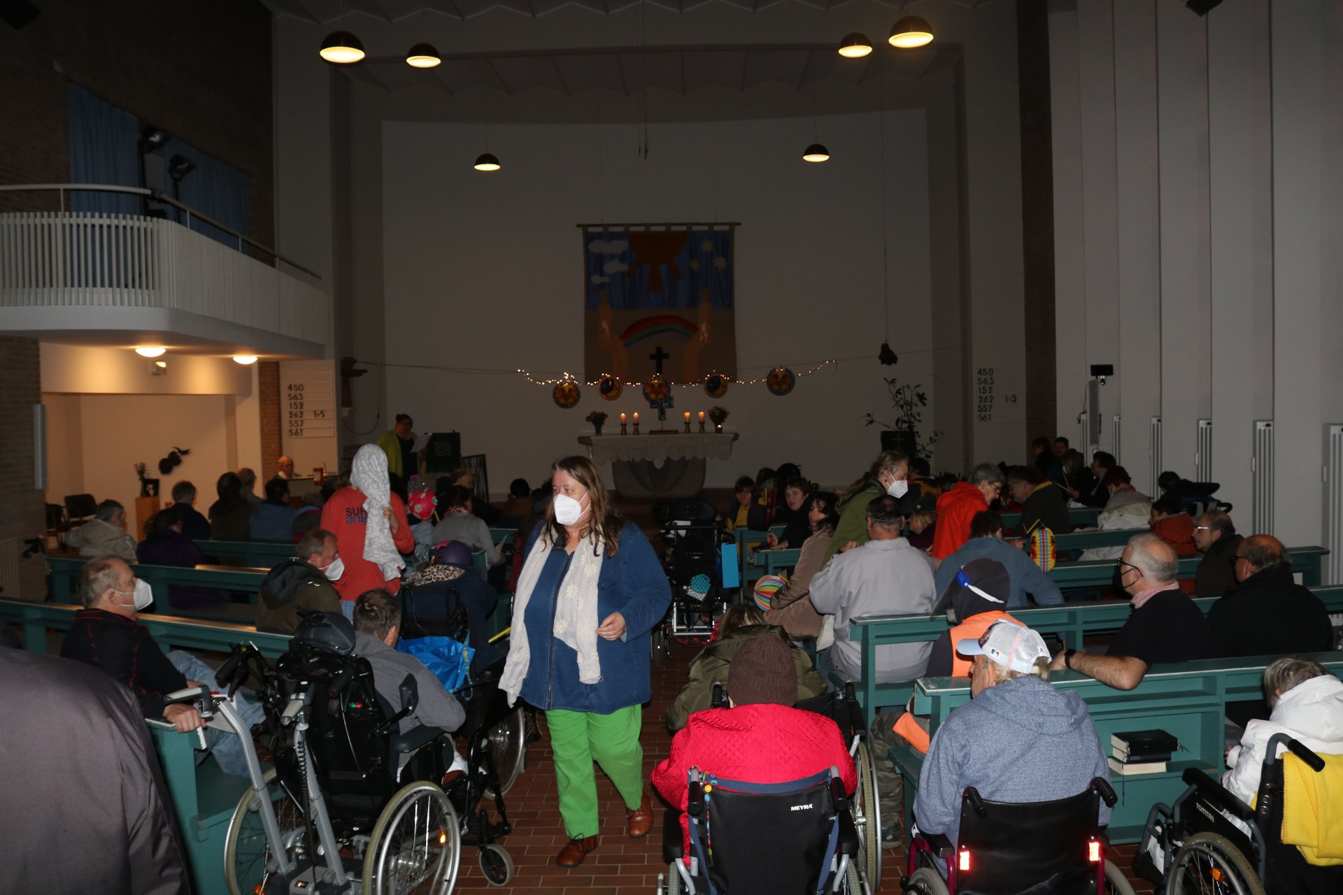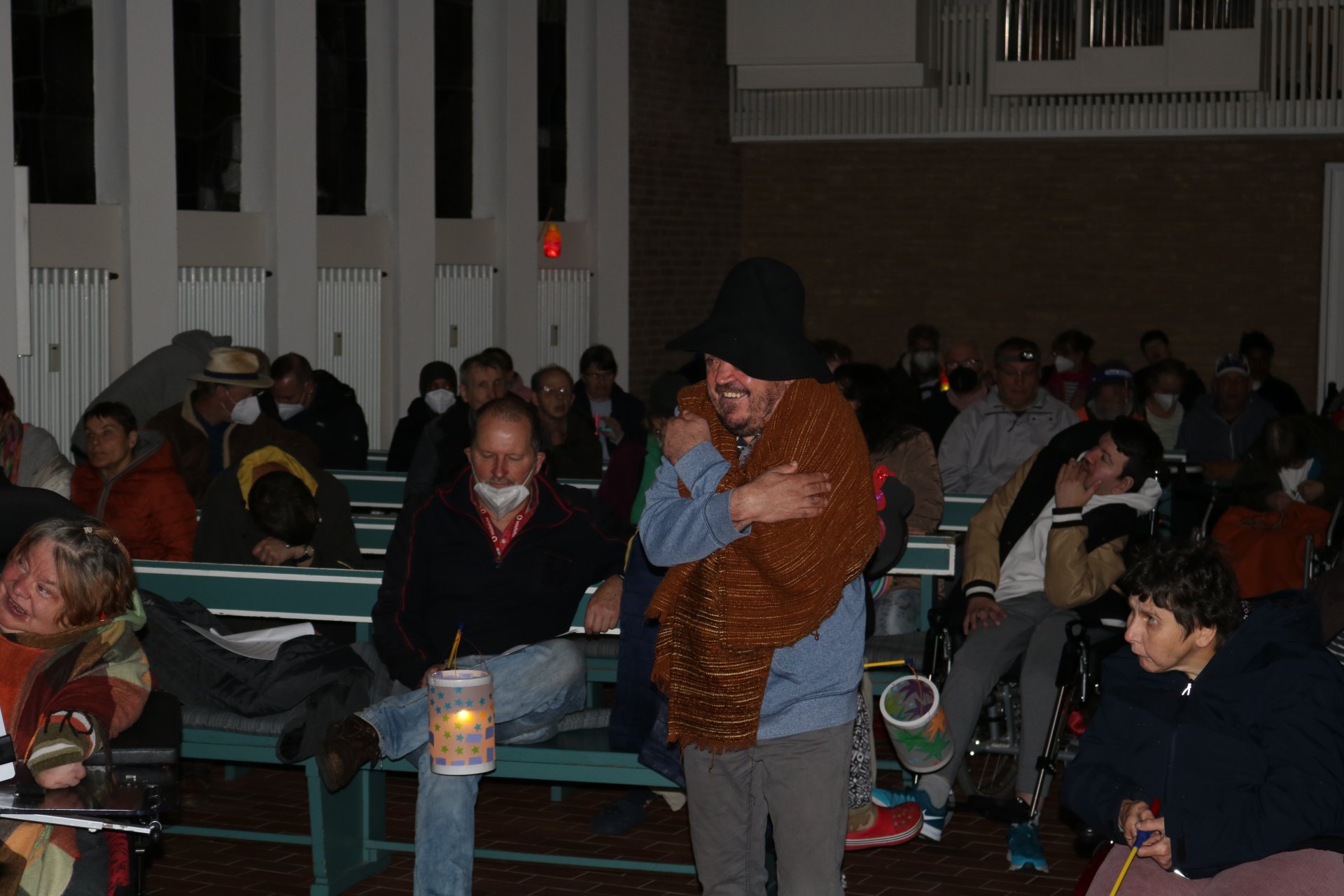 Nach dem Gottesdienst ging es dann endlich in die Dunkelheit. Das Akkordeon spielte auf und der singende Lichterzug machte sich auf den Weg rund um die Kirche.