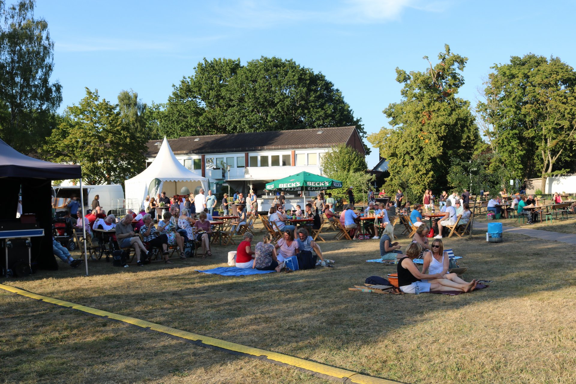 Die Sitzgelegenheiten waren voll besetzt und auf dem "Rasen" wurden die Picknickdecken ausgebreitet. Groß und Klein sowie einiges Getier war anwesend und genoss dieses stimmungsgeladene Konzert.