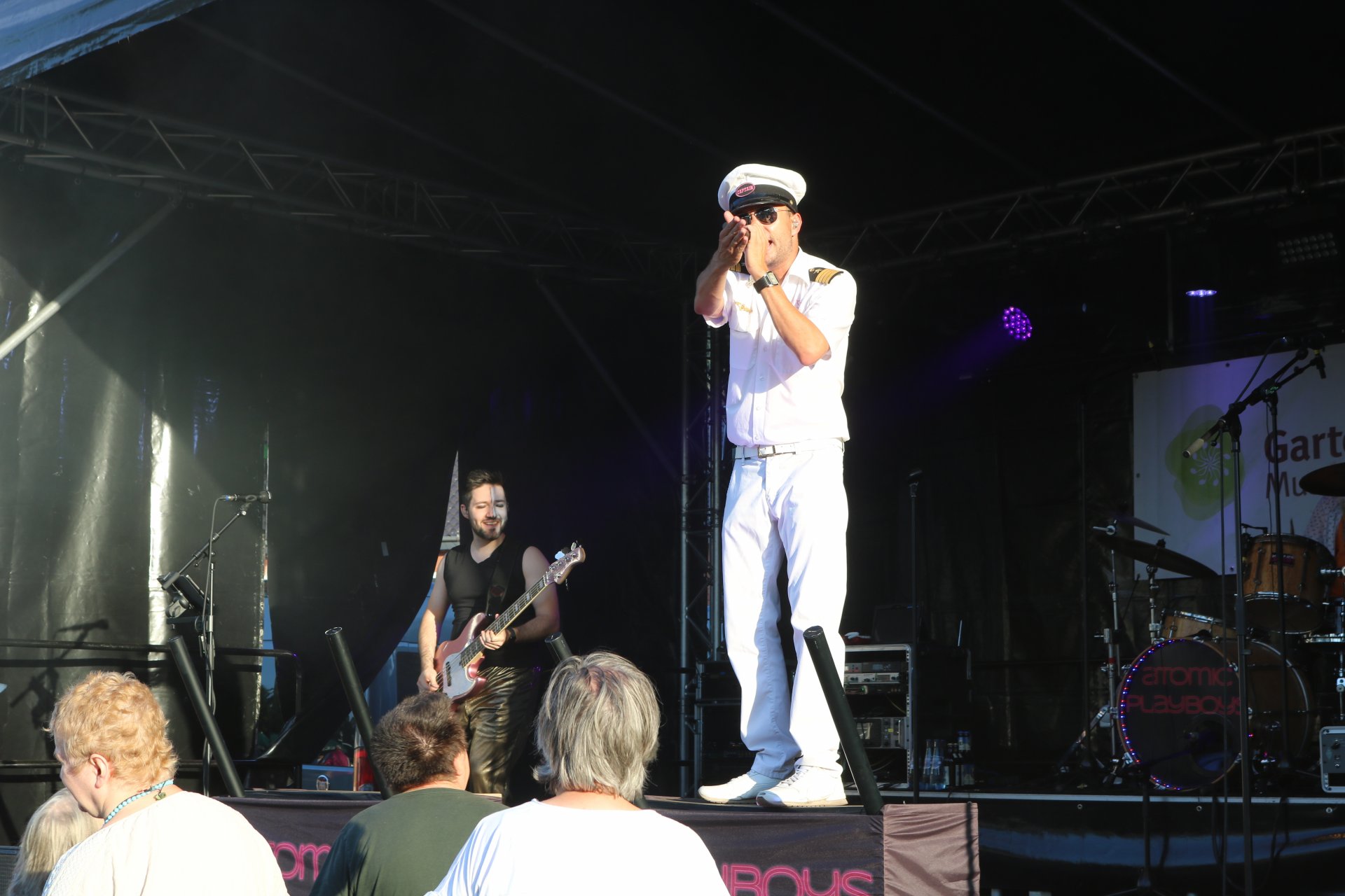 Die Atomic Playboys hielten, was sie versprachen. "Rockiges Fundament trifft Lebensfreude", so ihr Motto. Eine fröhlich-freche schrill-schräge Performance, mit allem, was dazu gehörte, traf auf ein begeistertes Publikum. Lieder zum Mitsingen, für jeden etwas dabei.