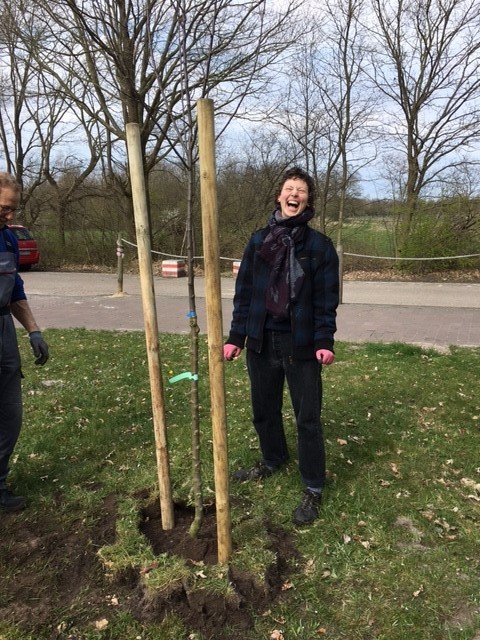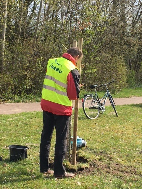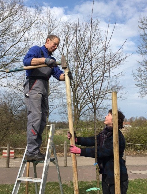 Das Team arbeitet gut zusammen, die Sonne scheint. Nur insgesamt 2 Stunden sind notwendig, bis alle 10 Bäumchen an ihrem angestammten Platz ein neues Zuhause finden.