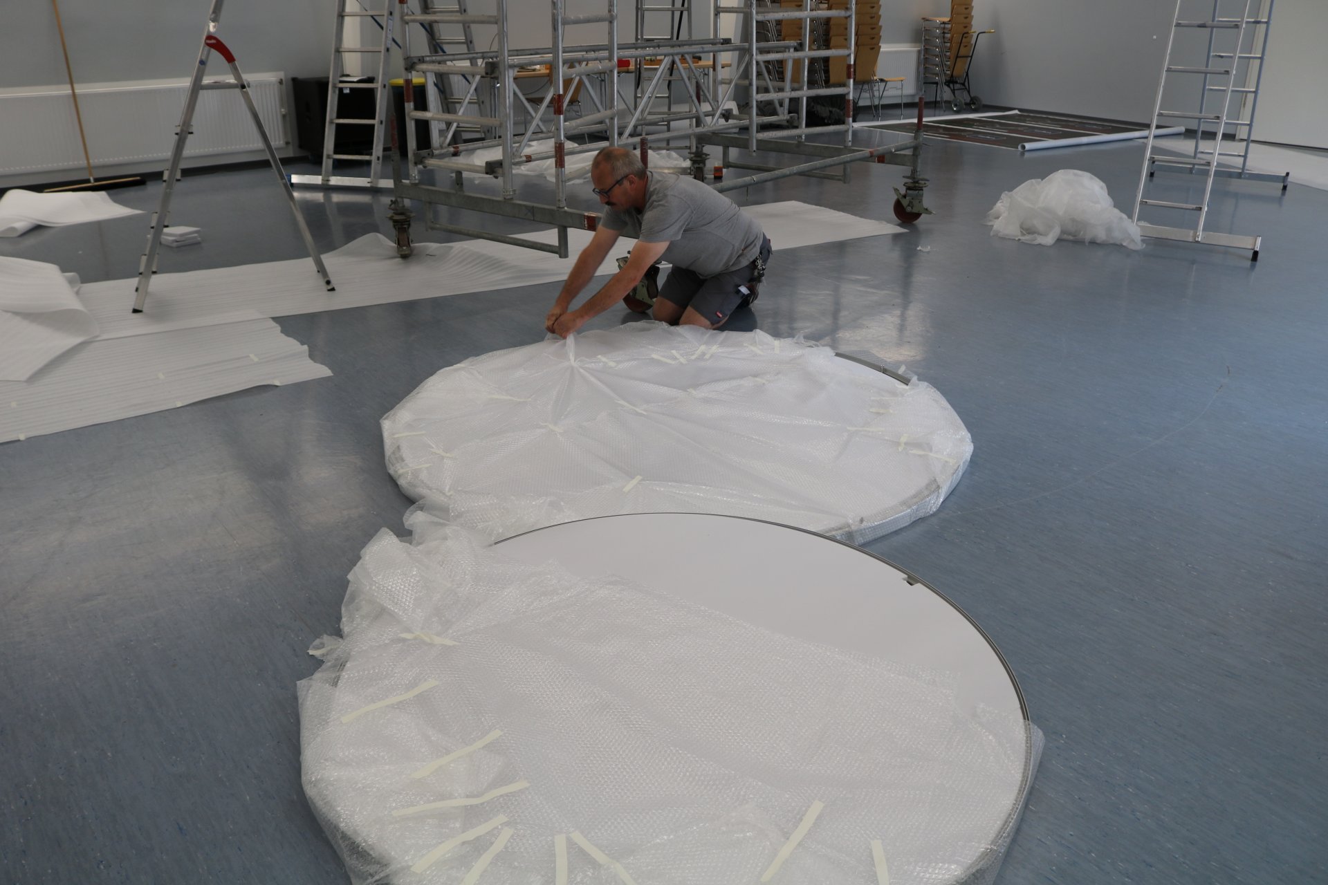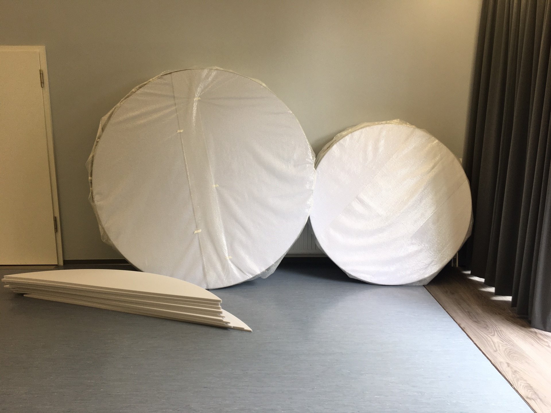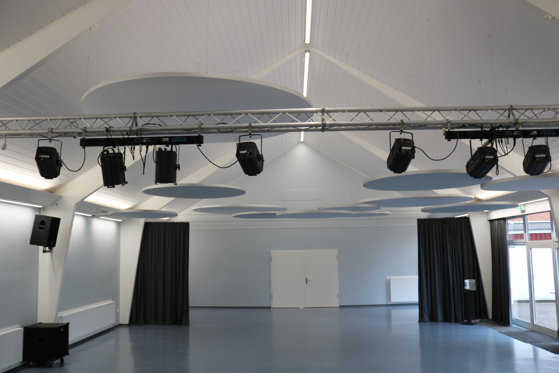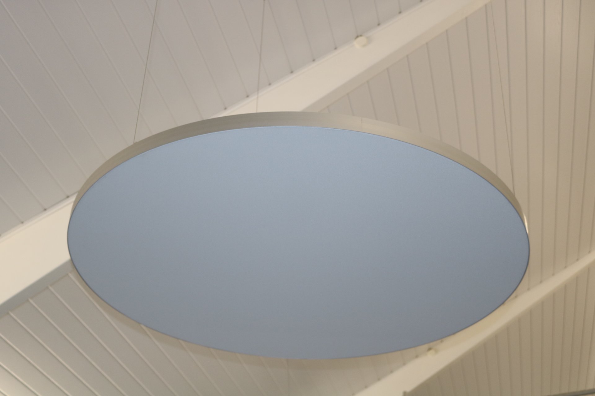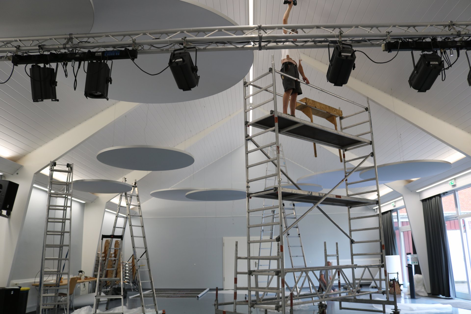 Mit der Montage der runden Deckenpaneele, die vielleicht ein wenig futuristisch anmuten, wurde der Nachhall um 50 % reduziert. Ein sensationelles Ergebnis.